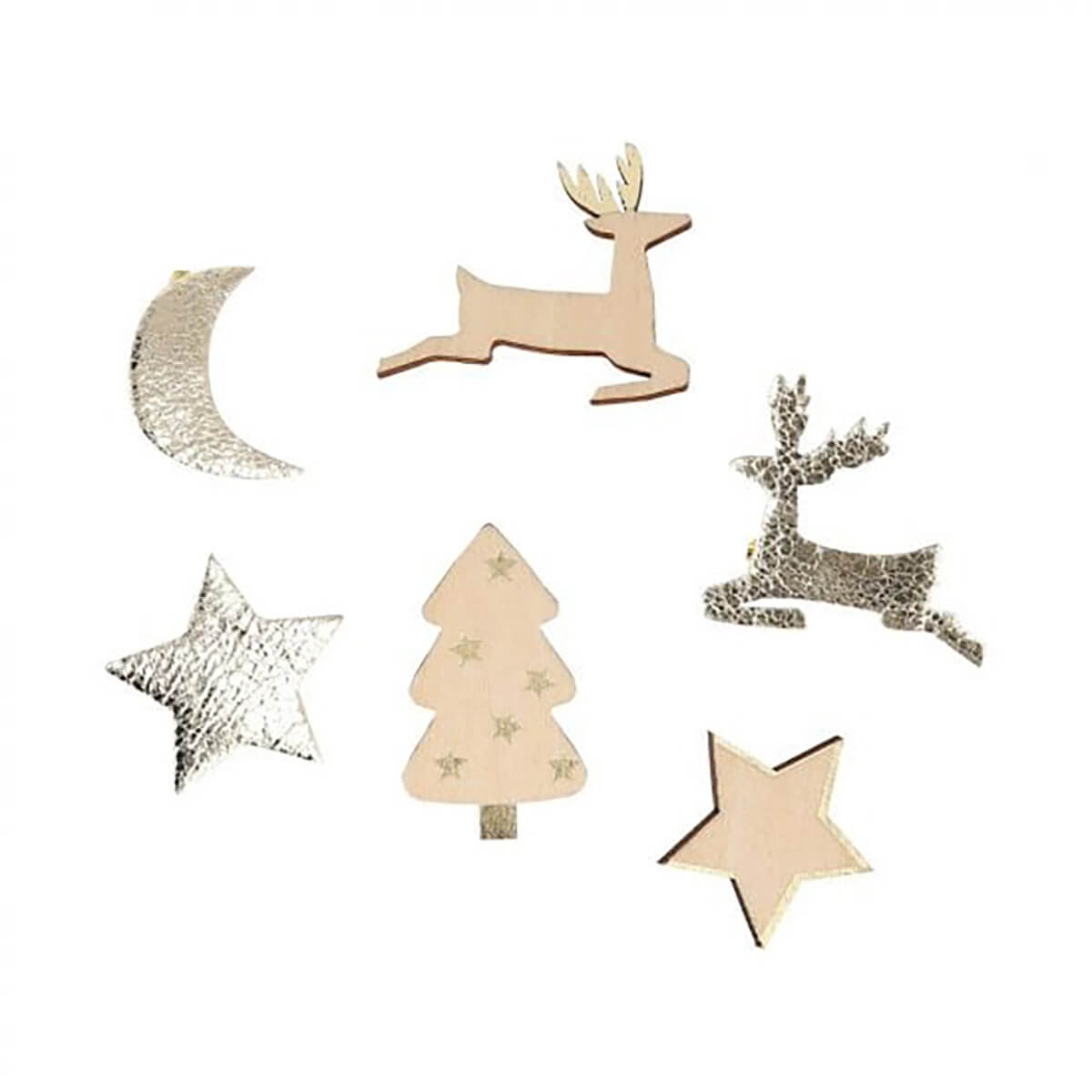 Each cracker contains a gold tissue paper party hat, a joke and a sparkly festive brooch.