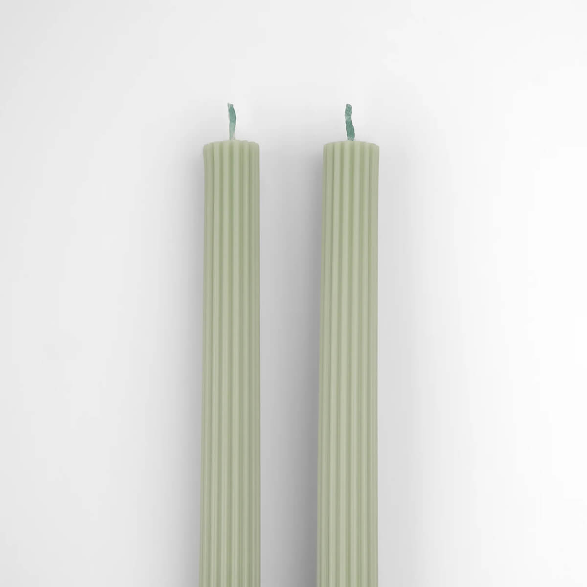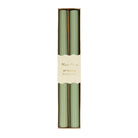 Sage Green Table Candles by Meri Meri. These striking green candles have matching wicks with ridged details. The perfect addition to your Christmas table or mantlepiece.