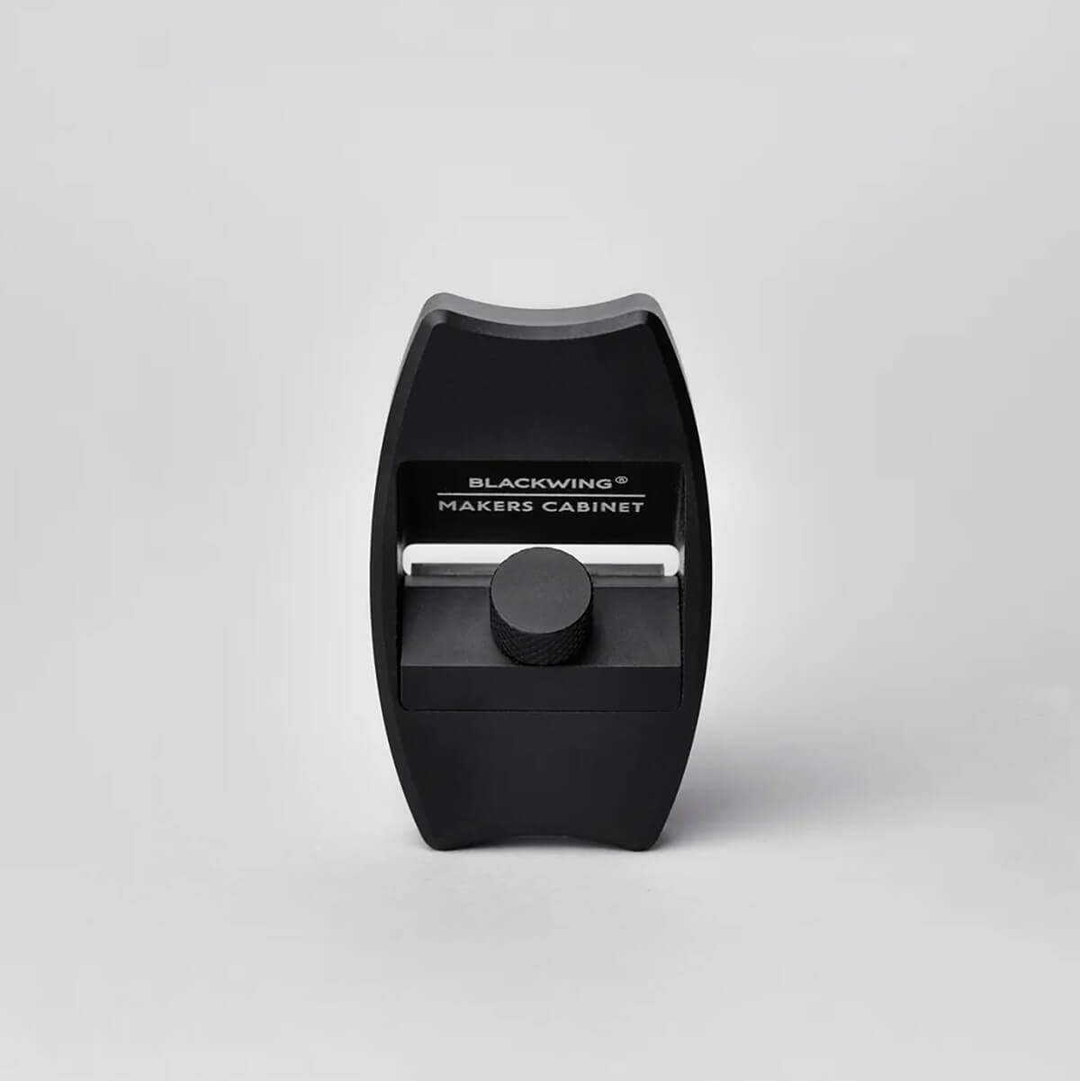 Blackwing Høvel Pencil Plane by Maker's Cabinet x Blackwing. Blackwing's signature matte black finish has been applied to a lightweight aluminium Høvel. The anodised finish will retain its immaculate aesthetic. Blackwing Høvel comes with a black-dyed wood base to capture your shavings and one pack of 10 blades.