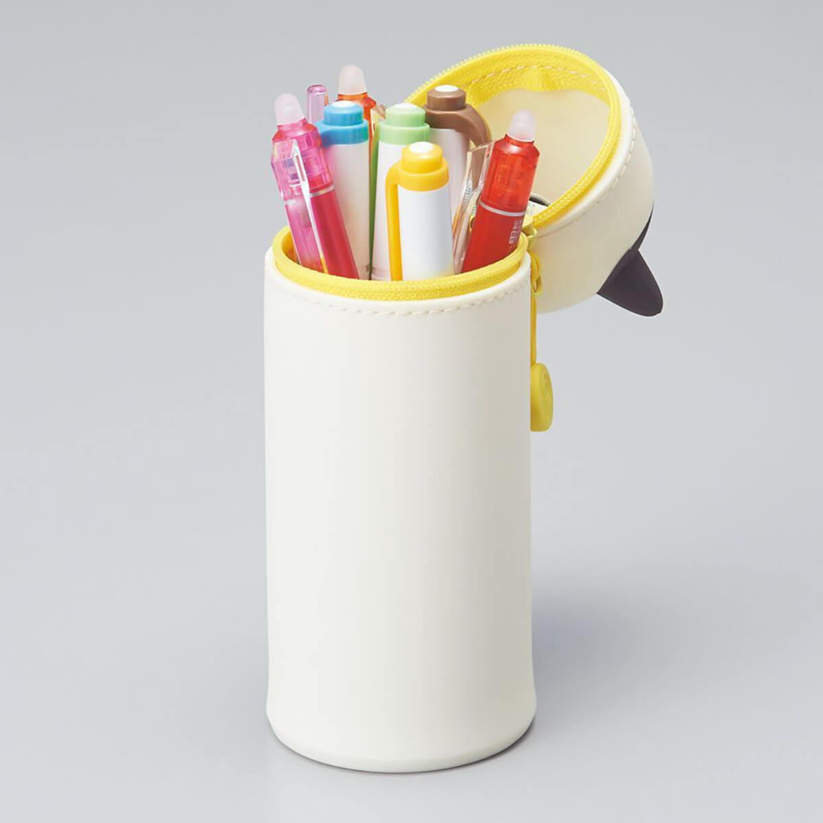 Calico Cat PuniLabo Stand Pen Case by Lihit Lab. In soft touch silicone with a brightly coloured zipper fastening, this super cute tortoiseshell kitty pen case can be easily transformed into a pen stand by pushing down the bottom. A total of 10 standard-sized pens fit in the pencil case. An eraser holder is hidden in the lid of the case. Made from a tactile, suede-feel silicone for a luxurious touch.