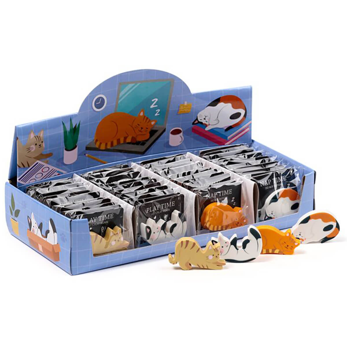 Cat Nap Time Eraser by Puckator. Novelty shaped eraser available in four adorable designs - two cat playtime and two cat nap time.