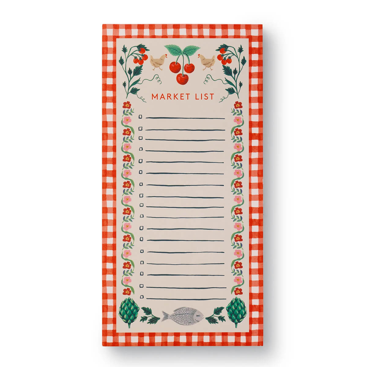 Get ready to tackle your to-do list with ease, thanks to Rifle Paper Co's Cherry Farm Market Pad. No more forgotten errands or missed appointments - this pad has got you covered. With a charming design this pad is not only practical but is a delightful addition to your daily routine. So go ahead, make that list and let's get to it!