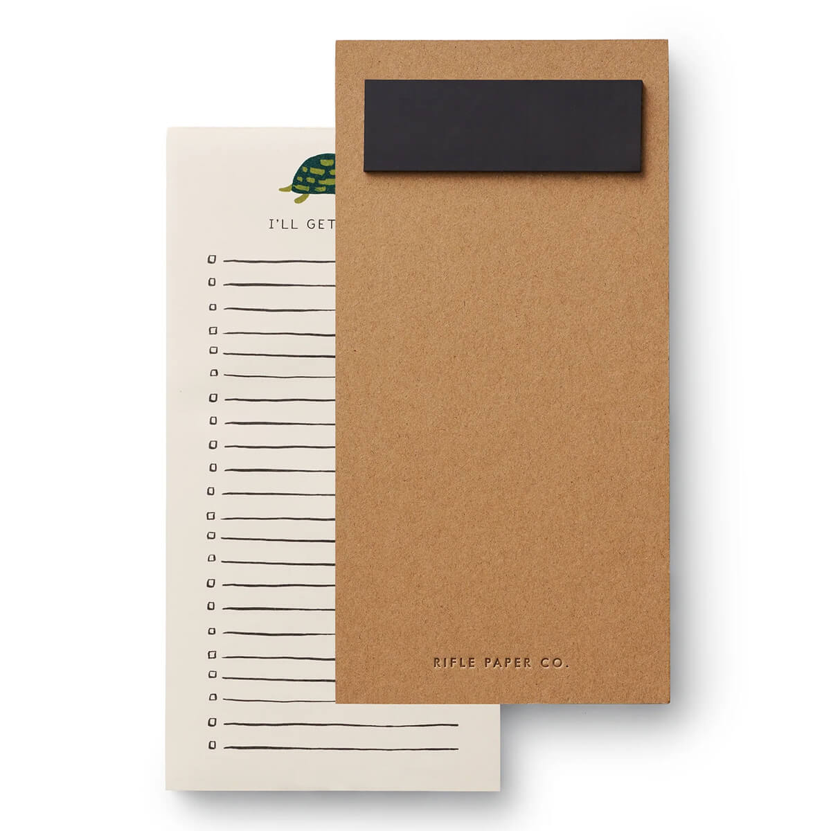 Get ready to tackle your to-do list with ease, thanks to Rifle Paper Co.'s I'll Get To It Market Pad. With an attached magnet, it's the perfect companion for your fridge, keeping your list front and centre. And with its beautifully illustrated design and high-quality paper, this pad is sure to brighten up your space while helping you stay on top of your tasks. No more forgotten errands or missed appointments - this pad has got you covered. So go ahead, make that list and let's get to it!
