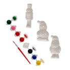 Contains: 3 plaster figurines (nutcracker, snowman, Santa Claus); tempera paints in 7 colours; 1 paintbrush.
