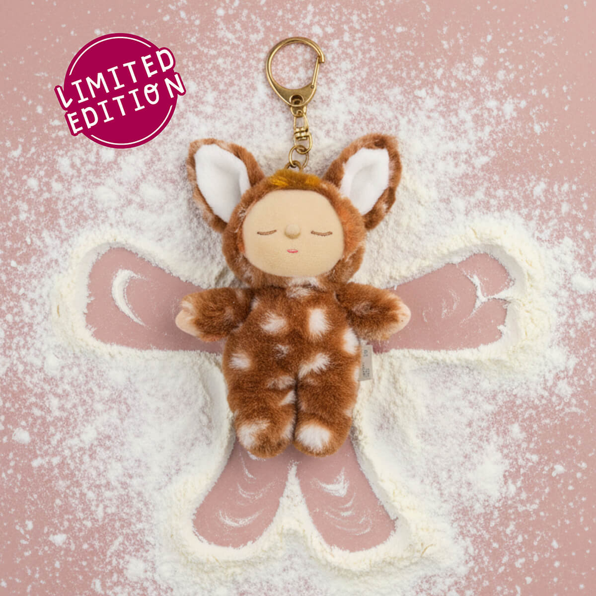 Lala Fawny Cozy Dinkum Bag Charm by Olli Ella. Meet Lala, the limited edition soft teeny Fawn in a pocket-ready charm. This tiny plush bag charm is a snug little take on the beloved Cozy Dinkum, ready to clip to your keys, backpack, belt or handbag for snuggly adventures wherever you go.