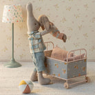Micro bunny by Maileg. Let the storytelling and hours of play begin with this soft bunny. It fits Maileg accessories in size micro perfectly and can live in the House of miniature dollhouse. This bunny has magnets in hands.