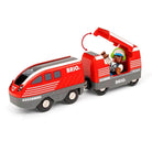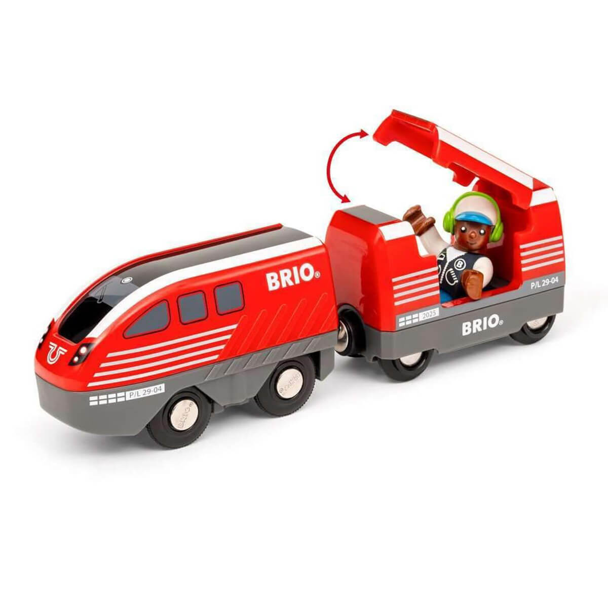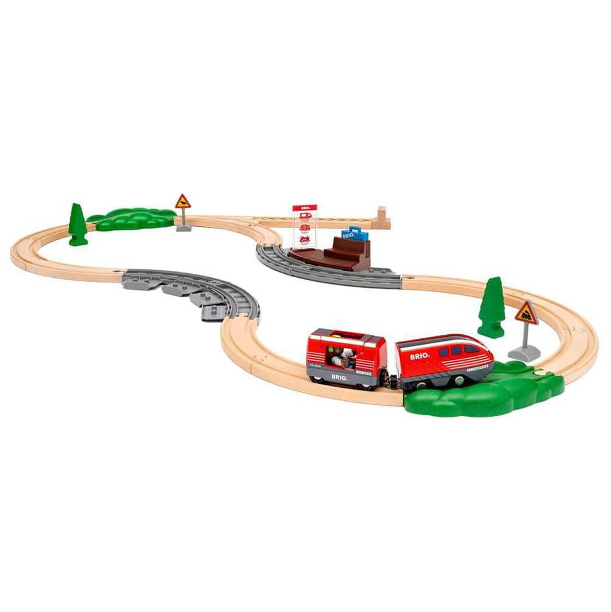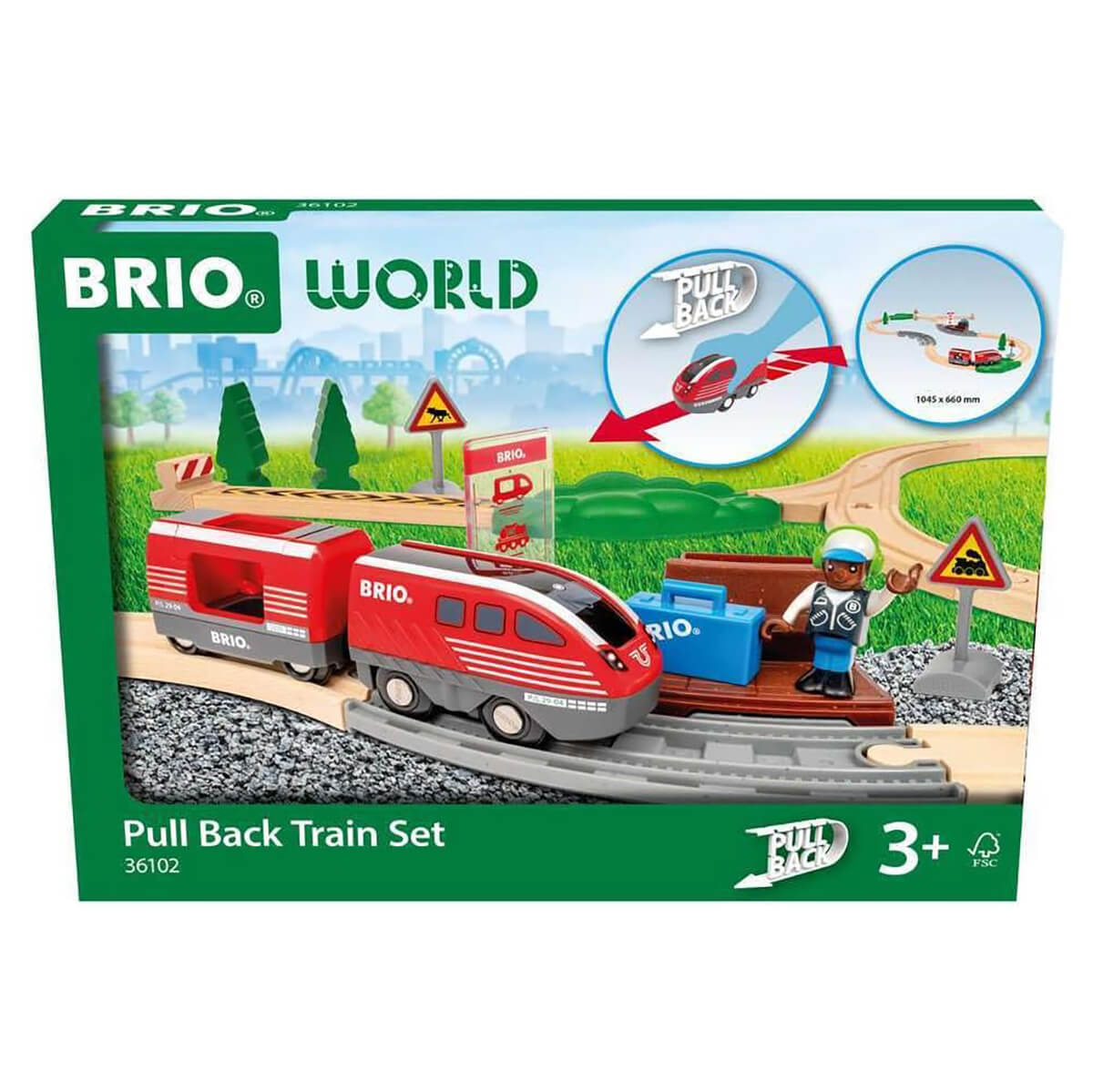 Pull Back Train Set by Brio. Keep the fun going with the 36102 Pull Back Train Set. Powered by 100% toddler energy, this toy train needs no batteries to bring big smiles to little faces. Let the passenger board at the station, draw back the red train and watch it go. When it slows down, just pull it back again for more action - no tears in sight. With easy-to-use functions and classic BRIO magnets, this countryside-themed set is a great addition to any BRIO World collection that brings endless joy for your little engineers.