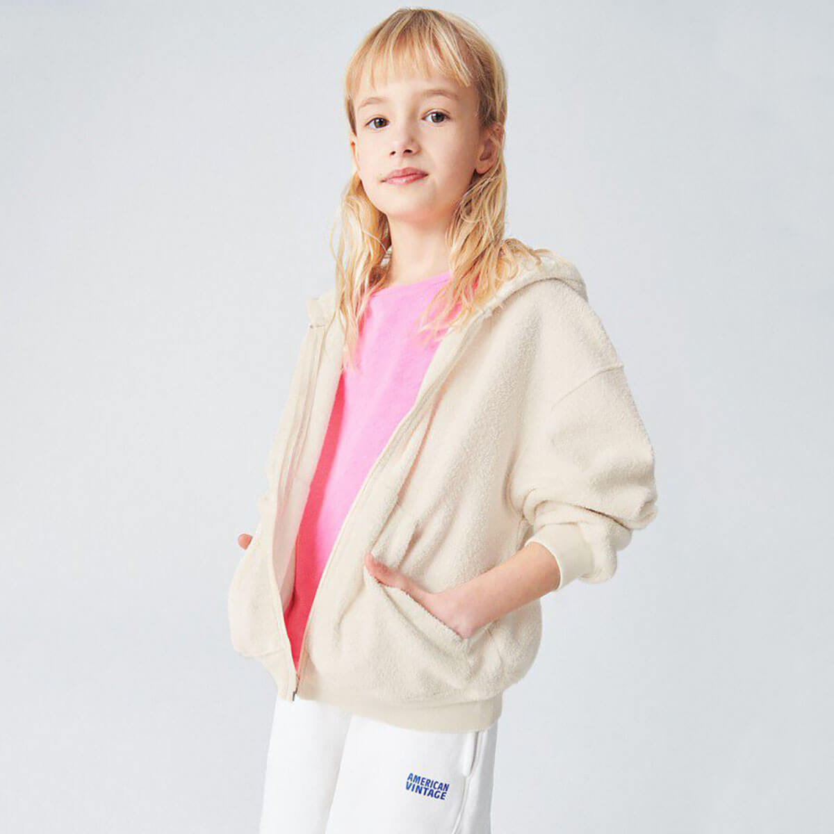 Bobypark kid's hoodie by American Vintage. The Bobypark zipped hoodie is a must-have in kids’ wardrobes. With its sheared terrycloth fleece brushed on the inside, it offers cosy comfort and ideal softness for everyday wear. Easy to slip on thanks to its zip, it can be worn over a t-shirt as soon as the temperature drops. A practical, easy-to-adopt essential, whatever the season.