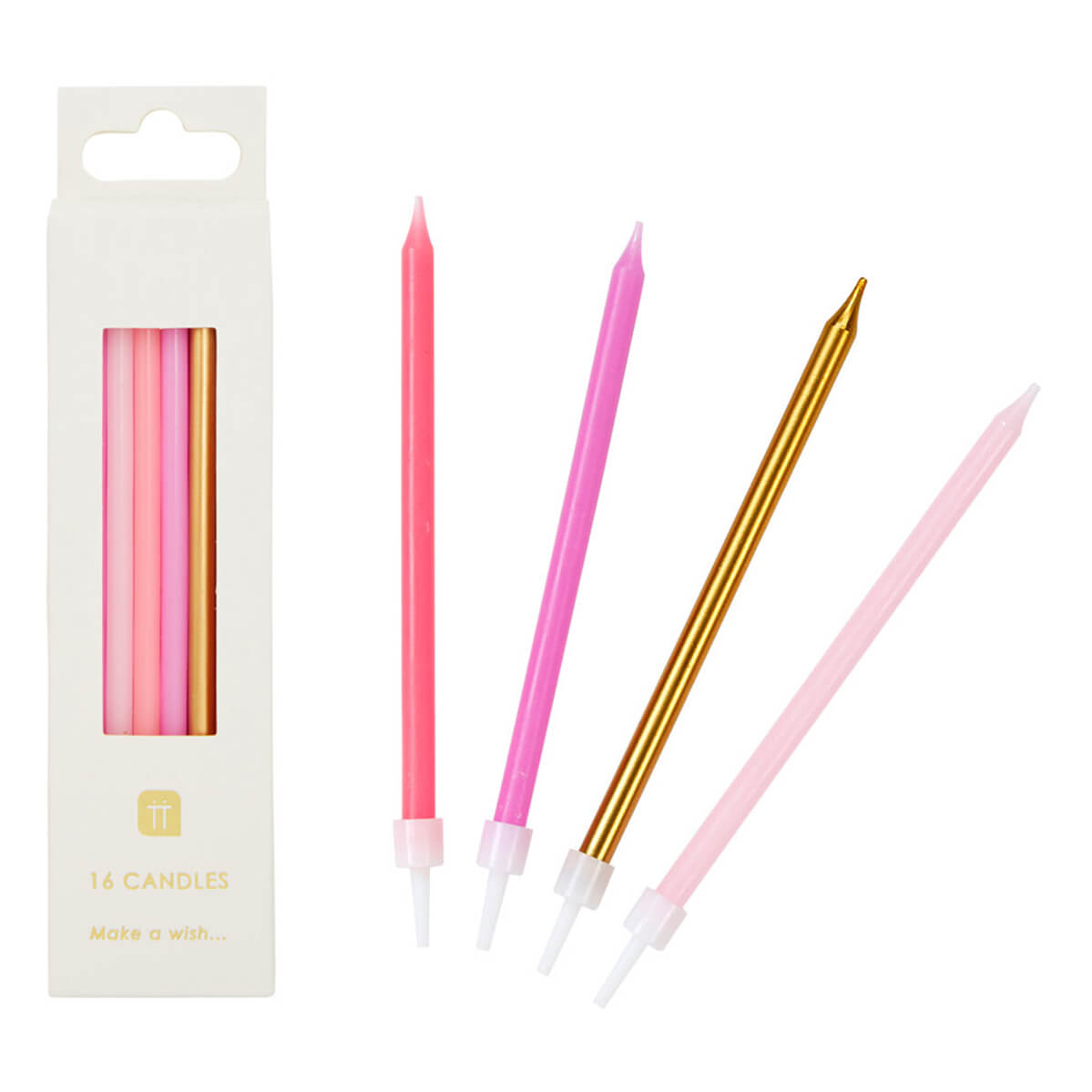 Candles by Talking Tables. Every cake needs some candles! There are four colours in each pack including gold and pinks.