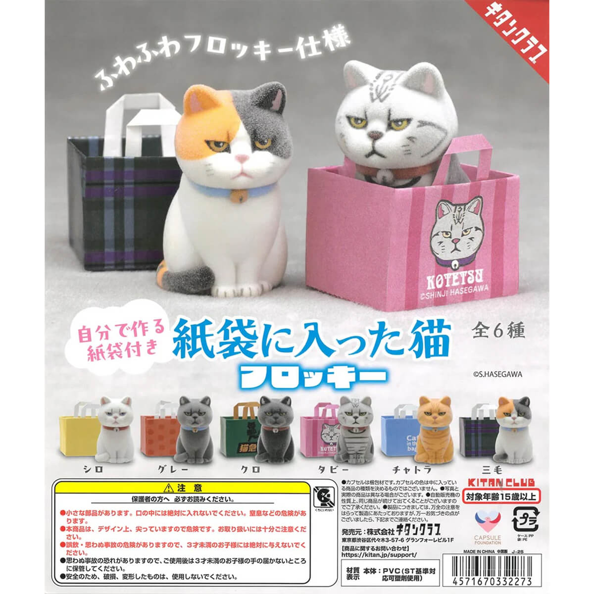 Cat In A Paper Bag Gachapon Capsule Collectible by Kitan Club Gachapon Capsule Collectible by Kitan Club. Highly collectible and authentic Japanese gachapon capsule containing one of six flocked cats with self assemble paper bags for them to sit in.