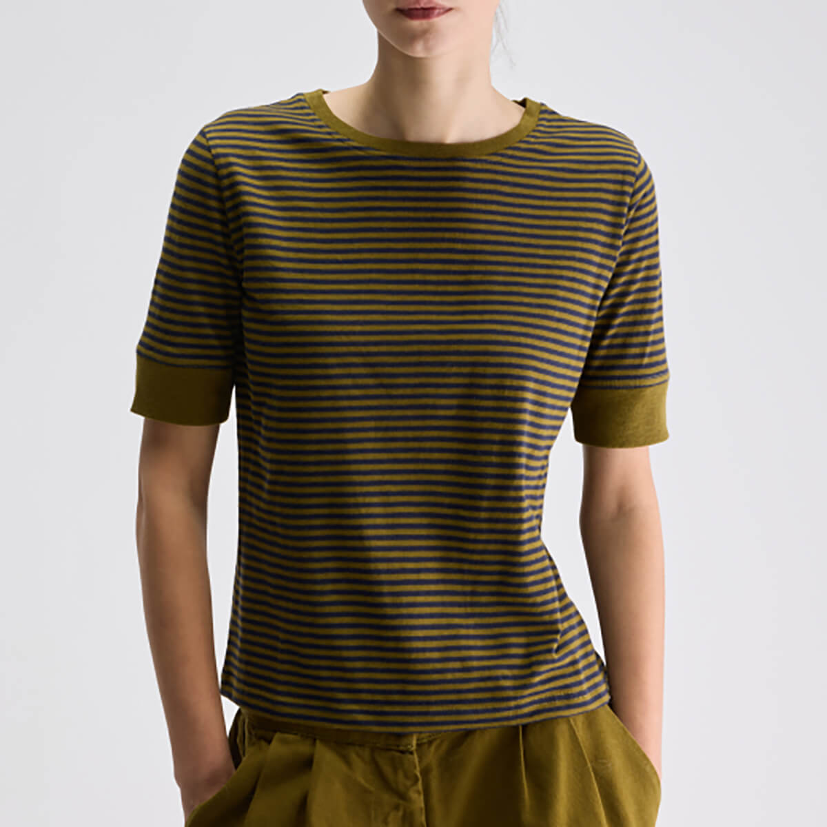 Cias T Shirt by Bellerose. Soft knitted tee with an all over stripe and cuffed sleeves.