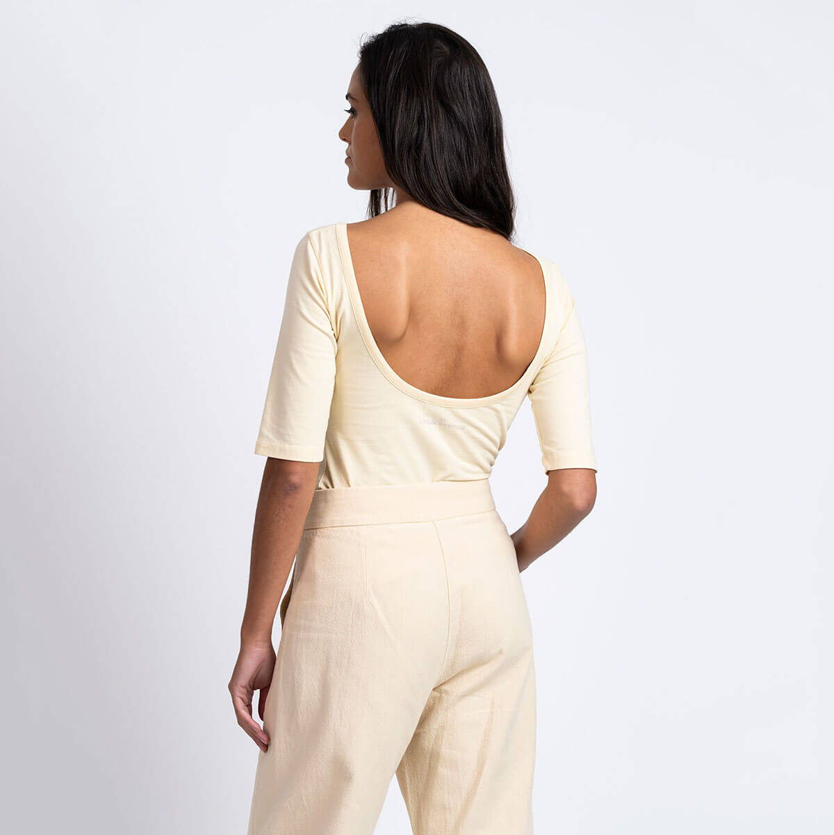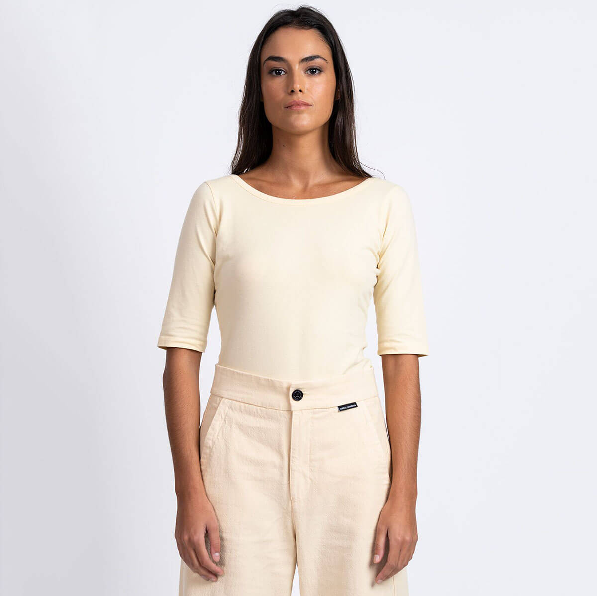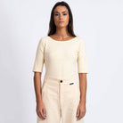 Cleo T-Shirt by Loreak Mendian. Fitted mid-sleeve tee with round neckline at the back and print detail.