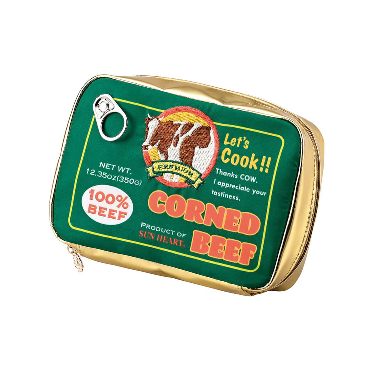 Corned Beef Pouch by Yup! Canned Corned Beef pouches, introducing a unique series of pouches inspired by food packaging, designed to tantalize your appetite and spark your imagination for their use! These multi-purpose storage pouches are finished with attention to detail and lined inside.