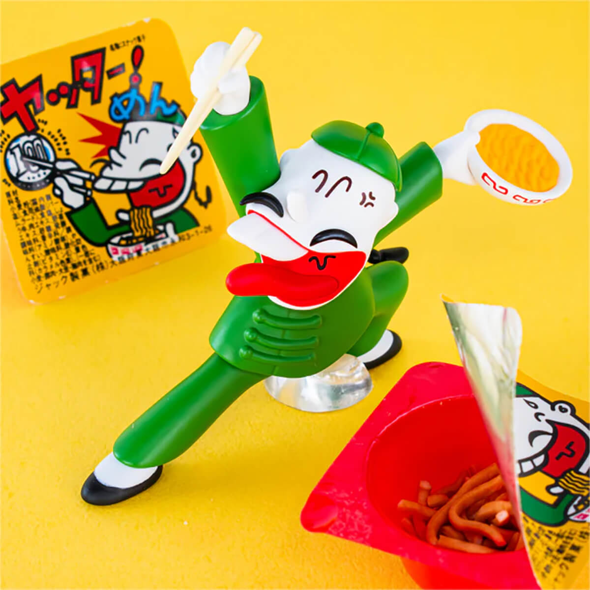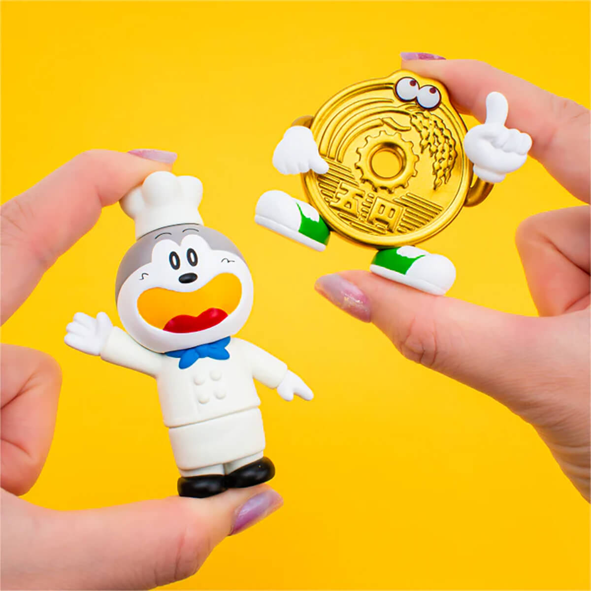 There are four Dagashi Character Mascot figures in this Gachapon series: Yatta Noodles from OmikujiYatta! Noodles, Goen-ku From Goen is here, Umaemo from Umaibo and French Fries.