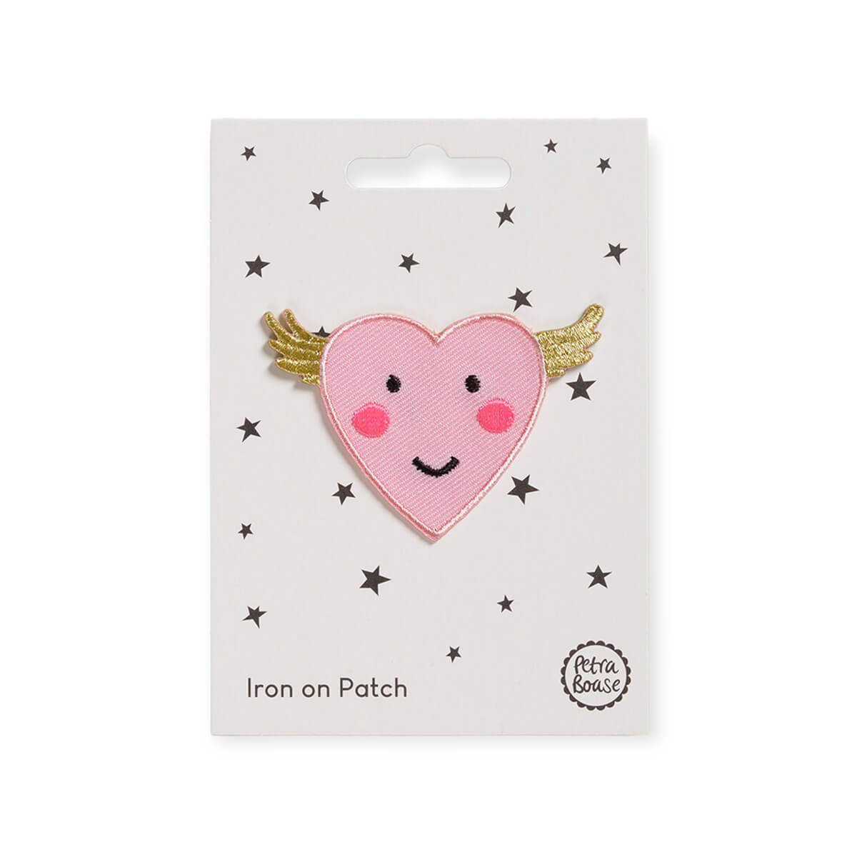 Flying heart iron on patch by Petra Boase. Richly embroidered colourful patch, with an iron-on backing so can be removed from the card and ironed on to a favourite t-shirt, rucksack or whatever you like!