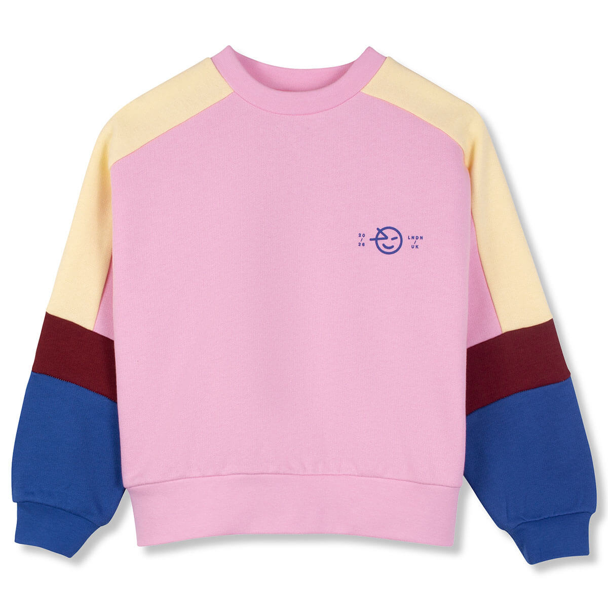 Good Morning Sweat by Wynken. Colour takes the lead in this sweatshirt, with blocks of artist blue, burgundy, candy pink and lemon bringing a bright, playful energy. The relaxed shape with dropped shoulders sits comfortably on the body and allows easy movement throughout the day. Ribbed cuffs and hem add a touch of structure while keeping the overall feel soft and relaxed. Made from 100% organic cotton, the fabric stays light and breathable when temperatures rise.