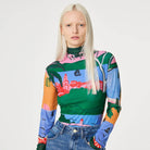 Jane Top by Fabienne Chapot. This slim-fit long-sleeve top features a colourful landscape-inspired print, adding a cheerful, playful touch to your wardrobe. Ideal for everyday outings or casual occasions, it pairs beautifully with skirts, trousers, or relaxed bottoms for a standout look.