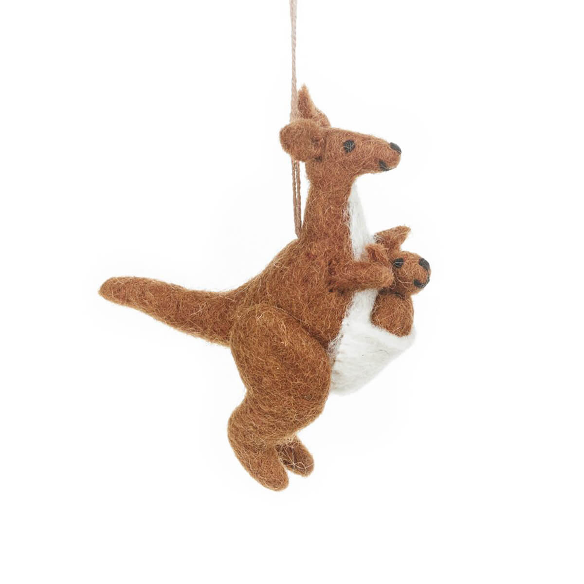 Kanga & Roo Safari Hanging Decoration by Felt So Good. Kanga & Roo look as though they've hopped straight out of the outback and into The Hundred Acre Wood with Christopher Robin himself. Kanga has a real pouch where an adorable baby Roo perches, sewn in for safety. Handmade using traditional hand-felting techniques.