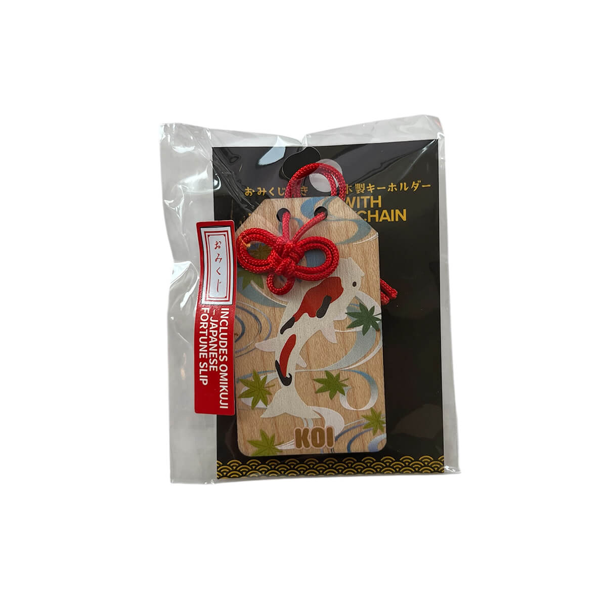 Omamori Good Luck Charm by Zenco Japanan. A wooden omamori keychain with an omikuji Japanese fortune slip. An omamori is a traditional Japanese good luck charm, designed to bring good fortune and offer protection, making them the perfect gift for friends or relatives.