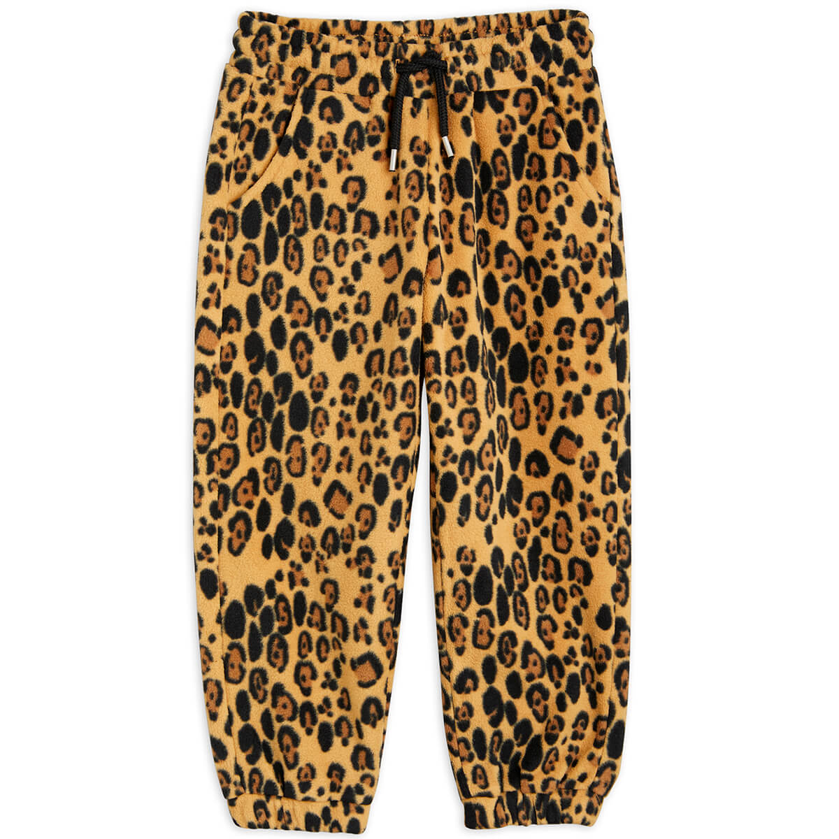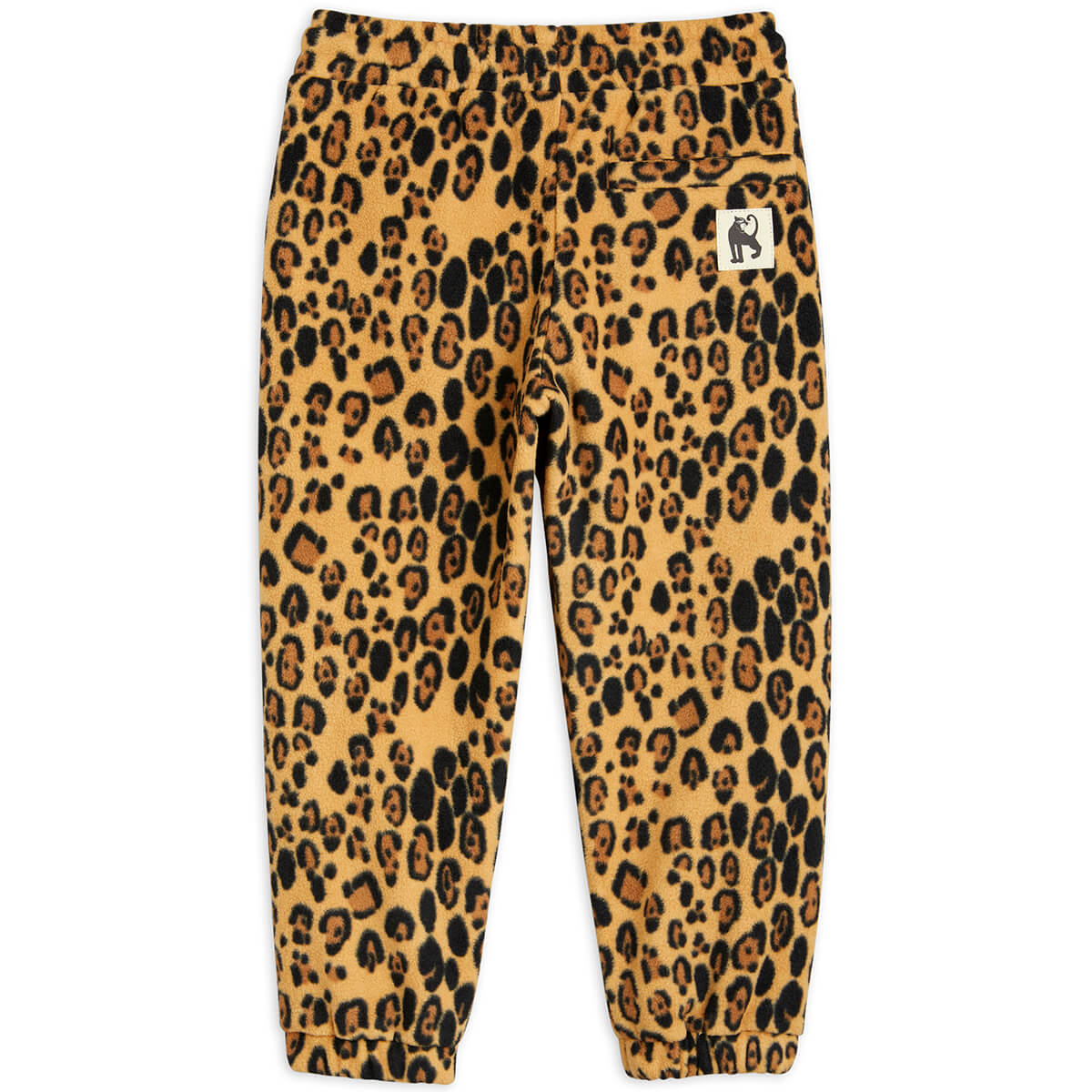 Leopard Fleece Trousers by Mini Rodini. Fleece pants in a classic leopard, featuring elasticated cuffs and pockets.