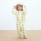 Mini Cherries Knitted Baby Pant by Tinycottons. These baby knit trousers, made from 100% cotton, feature embroidered mini cherries on a dusty yellow base. With ribbed trims at the waistband and hems, they provide a comfortable fit and a relaxed silhouette, allowing full freedom of movement—perfect for playtime or relaxing in style and comfort.