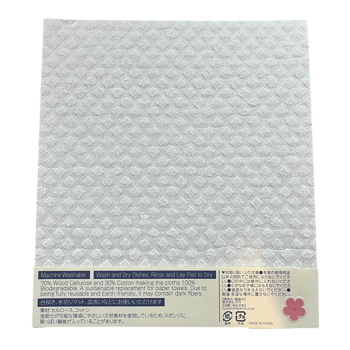 Reusable Natural Sponge Cloth by Zenco Japan. Sponge cloth made from 100% natural material from cellulose and cotton, both of which are extracted from wood scraps. It absorbs more than 10 times its own weight of water in no time, and when squeezed tightly, the water is quickly released and evaporates from the countless pores on the surface. This means bacteria are not likely to multiply, and the source of unpleasant smells is not created.