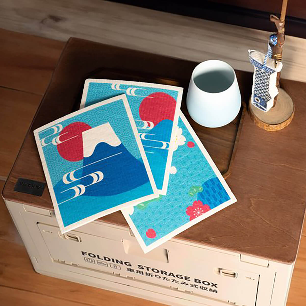 Mount Fuji Blue Reusable Natural Sponge Cloth by Zenco Japan