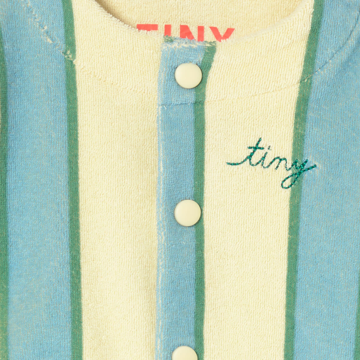 Retro Stripes Towel Baby Jacket by Tinycottons. Crafted from 100% organic cotton, this retro stripes print coat features a simple yet stylish silhouette with a round neckline, front snap fastening, and elasticated hems. Pair it with the matching pants for an adorable and cool coordinated look.