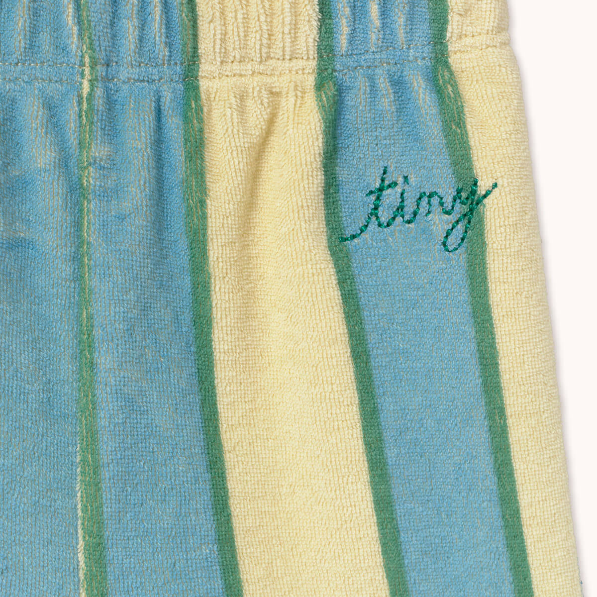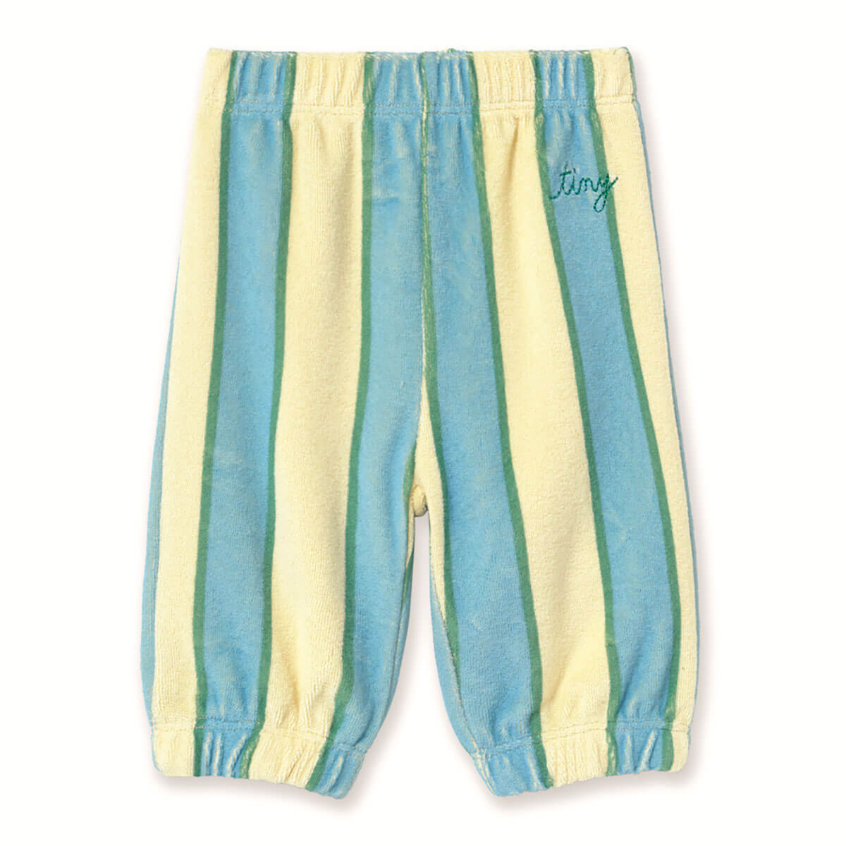Retro Stripes Towel Baby Sweatpant by Tinycottons. These retro stripes printed towel trousers offer the perfect blend of style and comfort. Crafted from 100% organic cotton, they feature an elastic waistband and elastic hems for added comfort and a secure fit. Pair them with the matching jacket for an adorable and cool coordinated look.