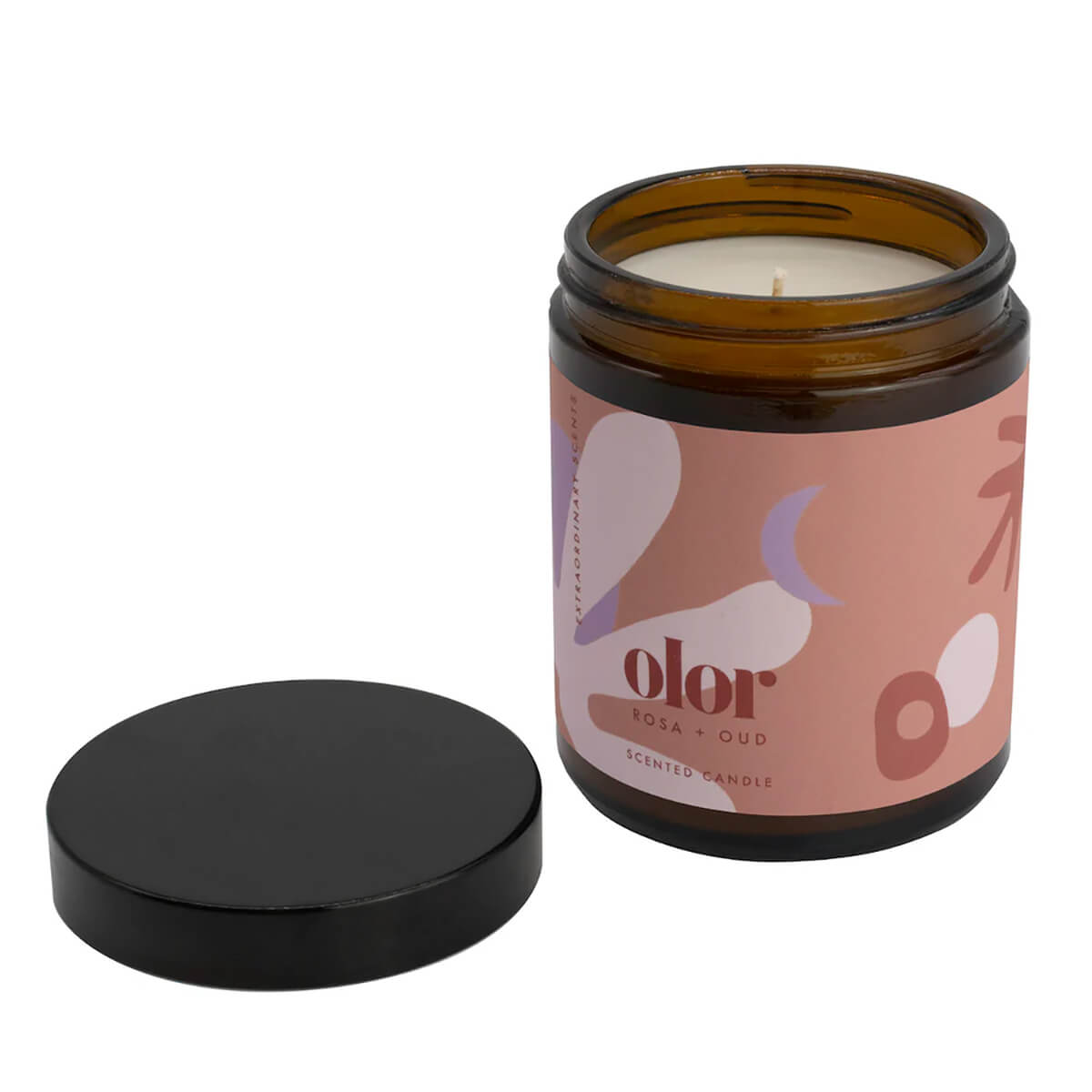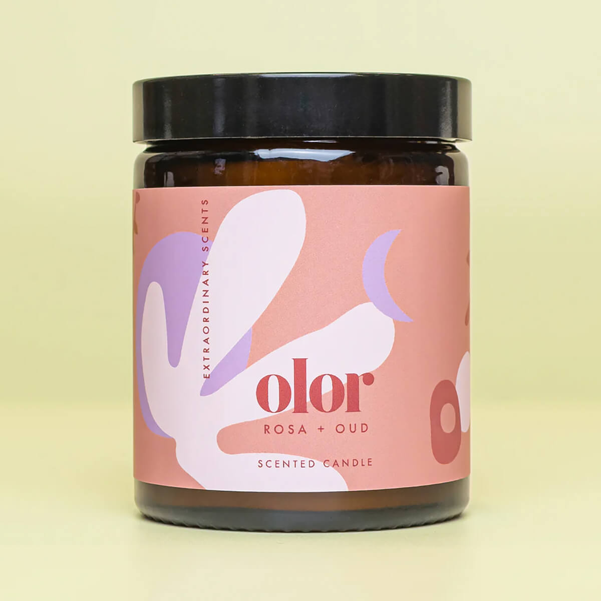 Rose and Oud Fragranced Jar Candle by Olor. Discover the seductive blend of velveteen dusk-pink rose petals combined with notes of oud. The woodiness is perfectly balanced with notes of geranium, jasmine, clove and praline with a hint of raspberry and lemon leaf. The dark glass jar is the perfect choice for individuals seeking a high-quality luxury candle with a relaxed and artistic vibe. The jar's sleek design, combined with Olor's vibrant and imaginative branding, offers the best of both worlds - a luxury candle housed in a vessel that seamlessly blends into any environment. Enjoy the freedom to express your style and indulge in a touch of luxury with this unique and captivating scented jar candle.