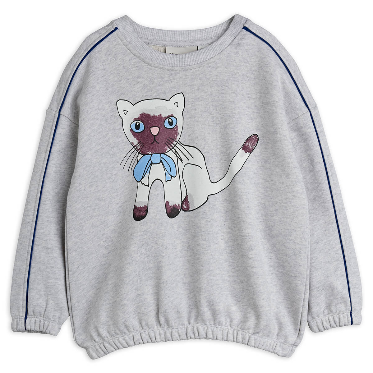 Siamese Sweatshirt by Mini Rodini. Sweatshirt made from 100% organic cotton. Designed with a relaxed fit and a siamese cat design on the front.