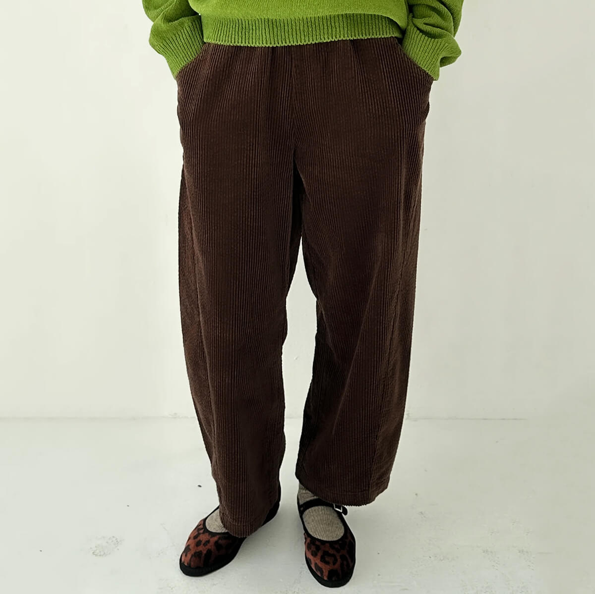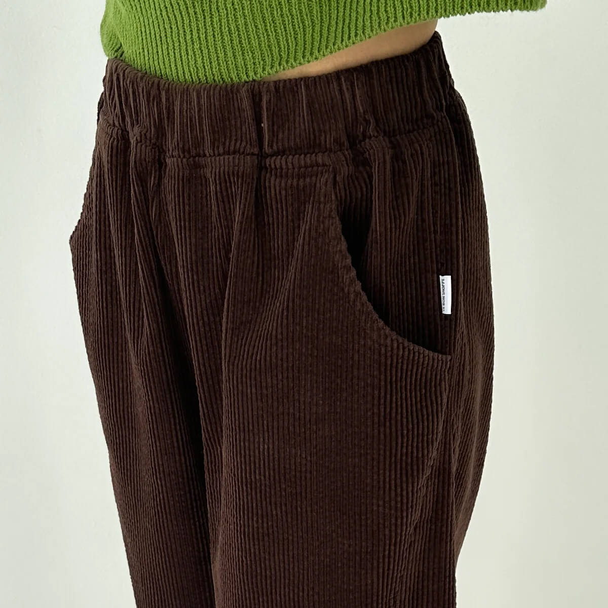 Soft Corduroy Arc Pants in Brown by Le Bon Shoppe