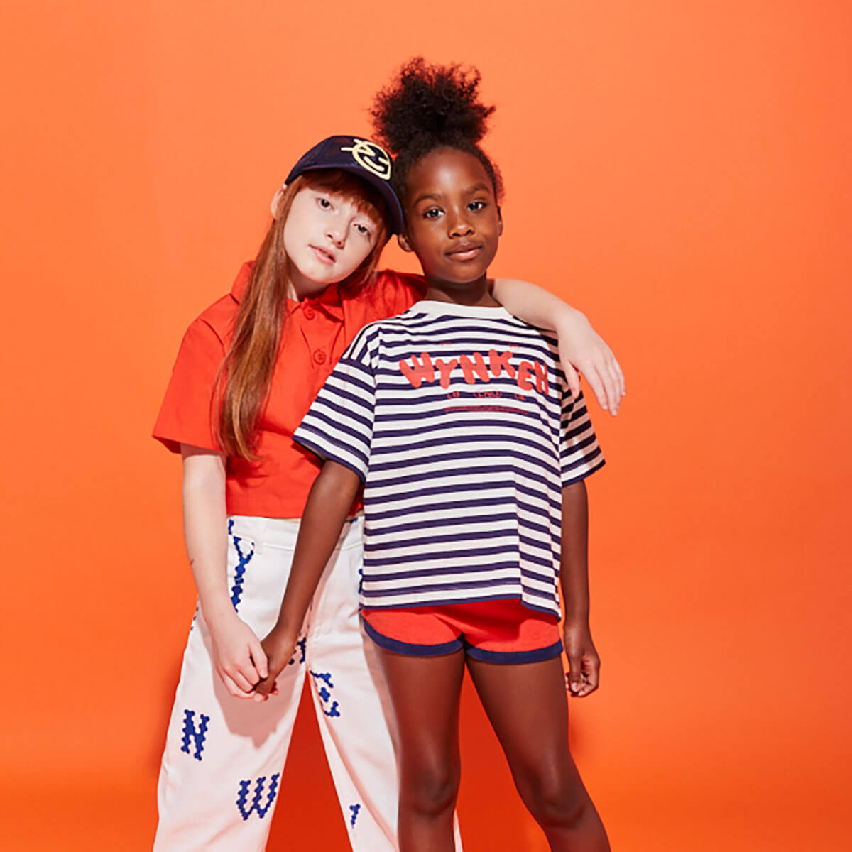 Stripe Cap Tee by Wynken. Made from 100% organic cotton, this t-shirt is soft, comfy, and perfect for sun-filled adventures. Navy stripes and bold red Wynken lettering add a playful pop, while short sleeves keep things cool and carefree. With its cheerful stripes and playful energy, it’s a go-to tee for little ones who love fun in the sun.