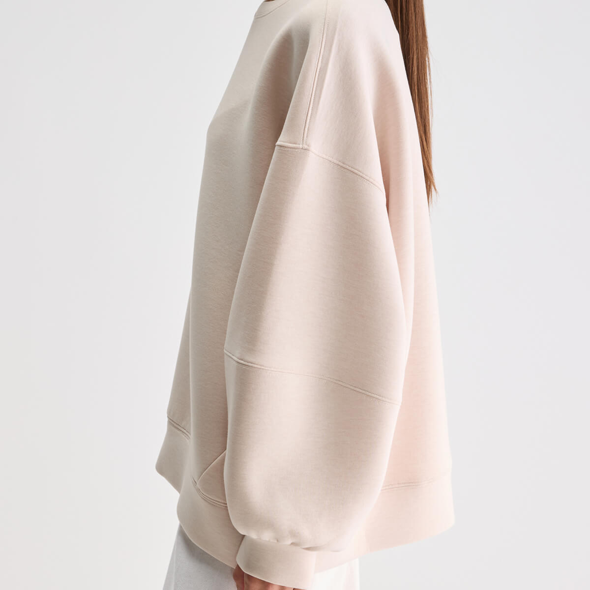 Trig Crewneck Sweatshirt by Bellerose. Oversized crewneck sweatshirt with long balloon sleeves and dropped shoulders, made from soft cream cotton jersey and featuring a "bb" embossed print.