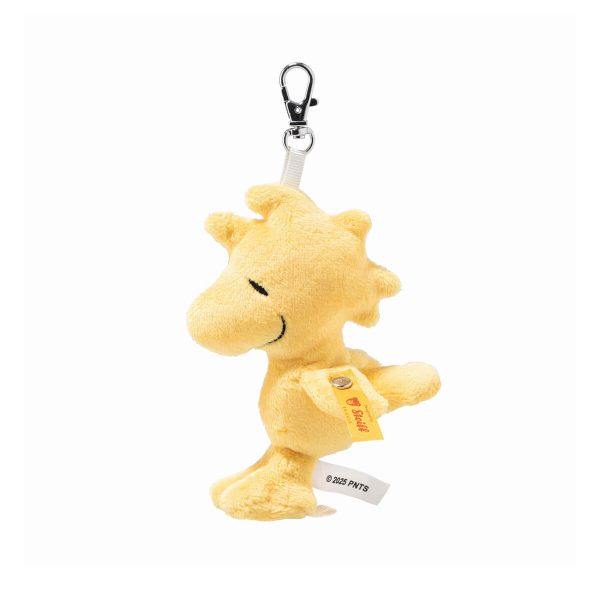 Woodstock Keyring by Steiff. Woodstock, Snoopy’s loyal and lovable friend, is now always by your side as a cuddly pendant! Made from soft plush and with a cheerfully embroidered face, he’s sure to bring smiles all around. Known from Peanuts, Woodstock joins his best friend Snoopy on all kinds of adventures – whether soaring high in the sky or curling up cozily in his dog bed. Thanks to the practical clip, he can be easily attached to bags, backpacks, or keychains. A little friend for life, always ready for new adventures!