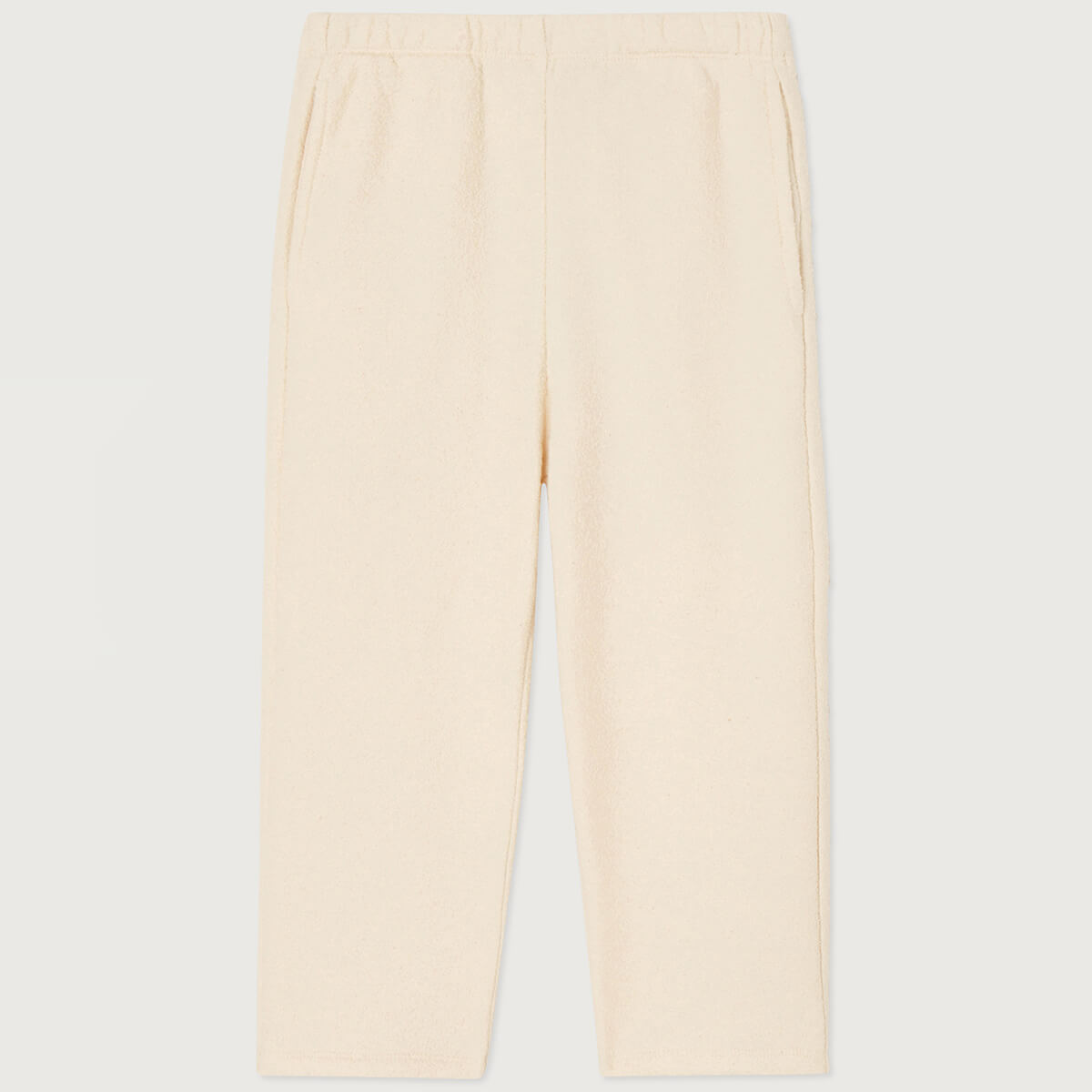 Bobypark kid's joggers by American Vintage. Simple organic cotton jogging bottoms in a textured bouclé-effect fabric with an elasticated waist, side pockets and plain hem. No logos, stylish simplicity.