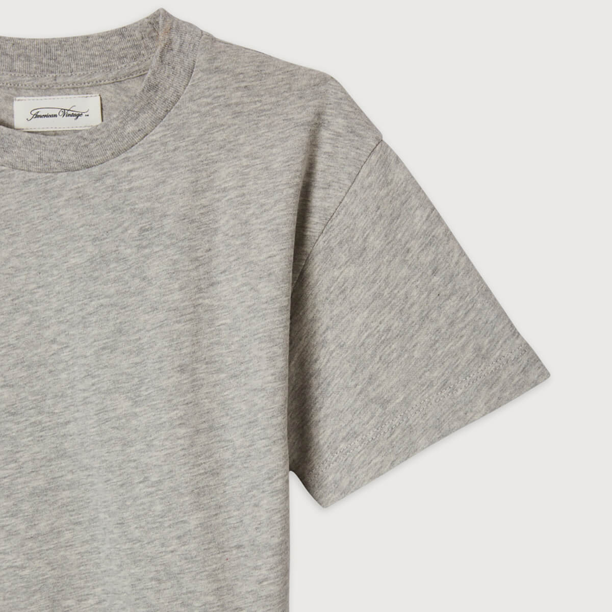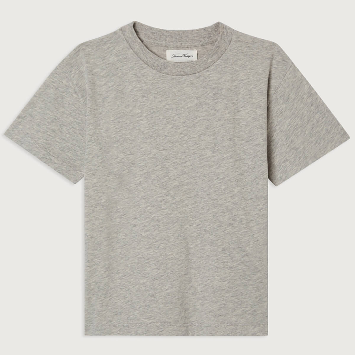 Gamipy kid's round T shirt by American Vintage. Simple straight cut short sleeve tee with a round neck and dropped shoulders. No logos, stylish simplicity.