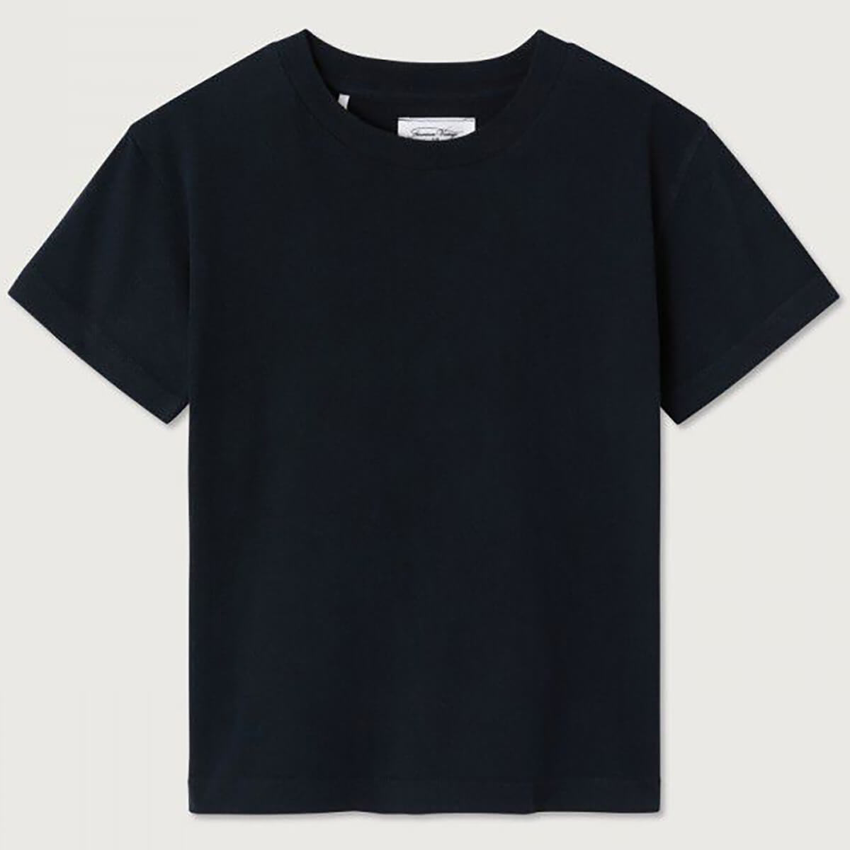 Gamipy kid's Round neck T shirt by American Vintage. Simple straight cut short sleeve tee with a round neck and dropped shoulders. No logos, stylish simplicity.