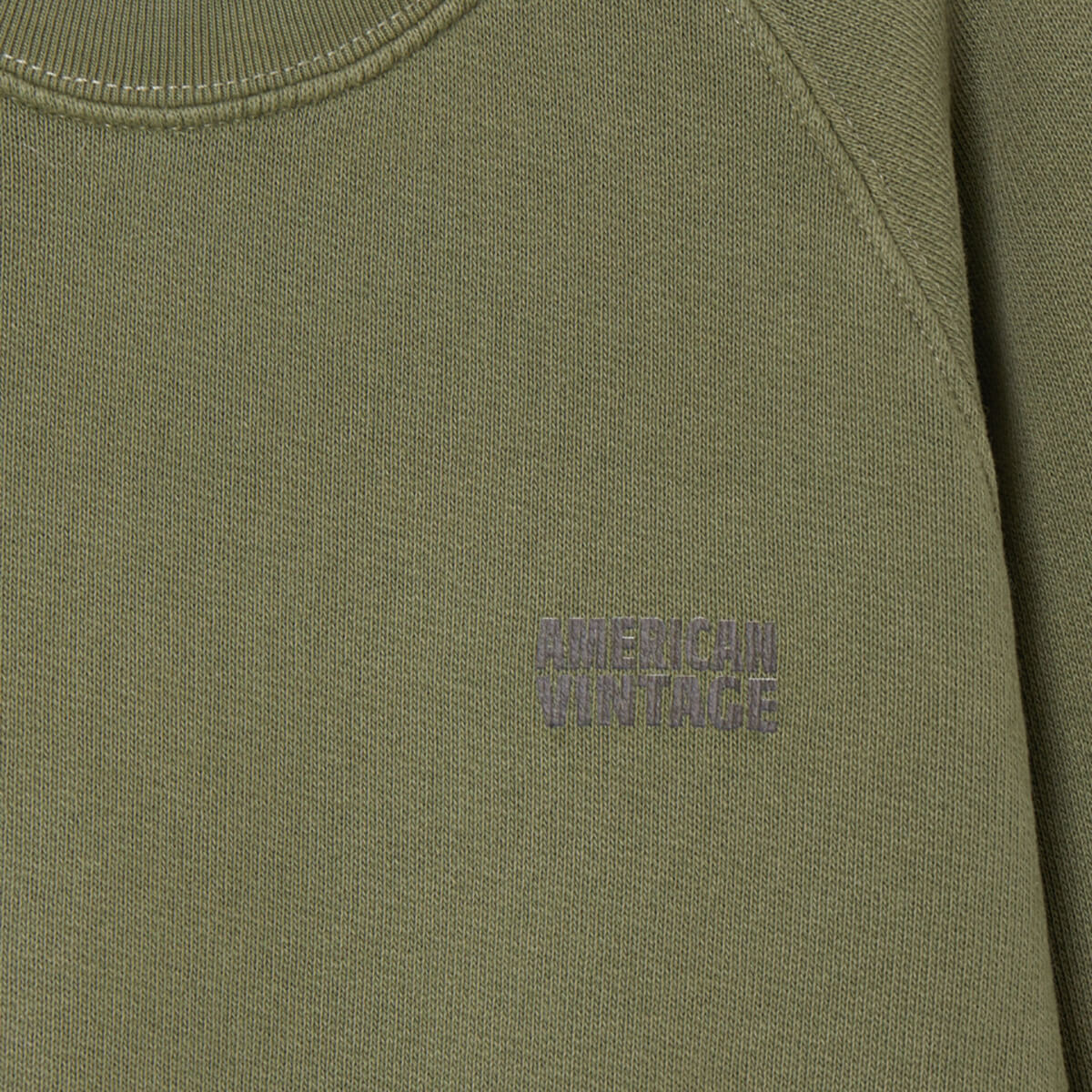 Izubird kid's sweatshirt by American Vintage. Puffball cut organic cotton sweatshirt with a round neck and raglan sleeves in a soft, flexible and thick fleece. Small American Vintage logo on the chest.