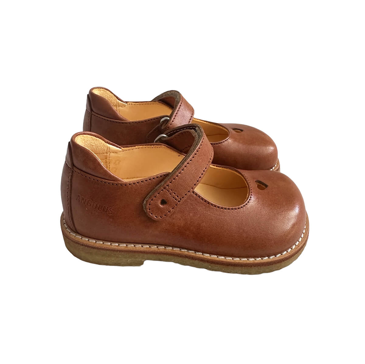 Wide Fit Starter Mary Janes with Heart in Tan by Angulus - Last Ones In Stock - EUR 22-24