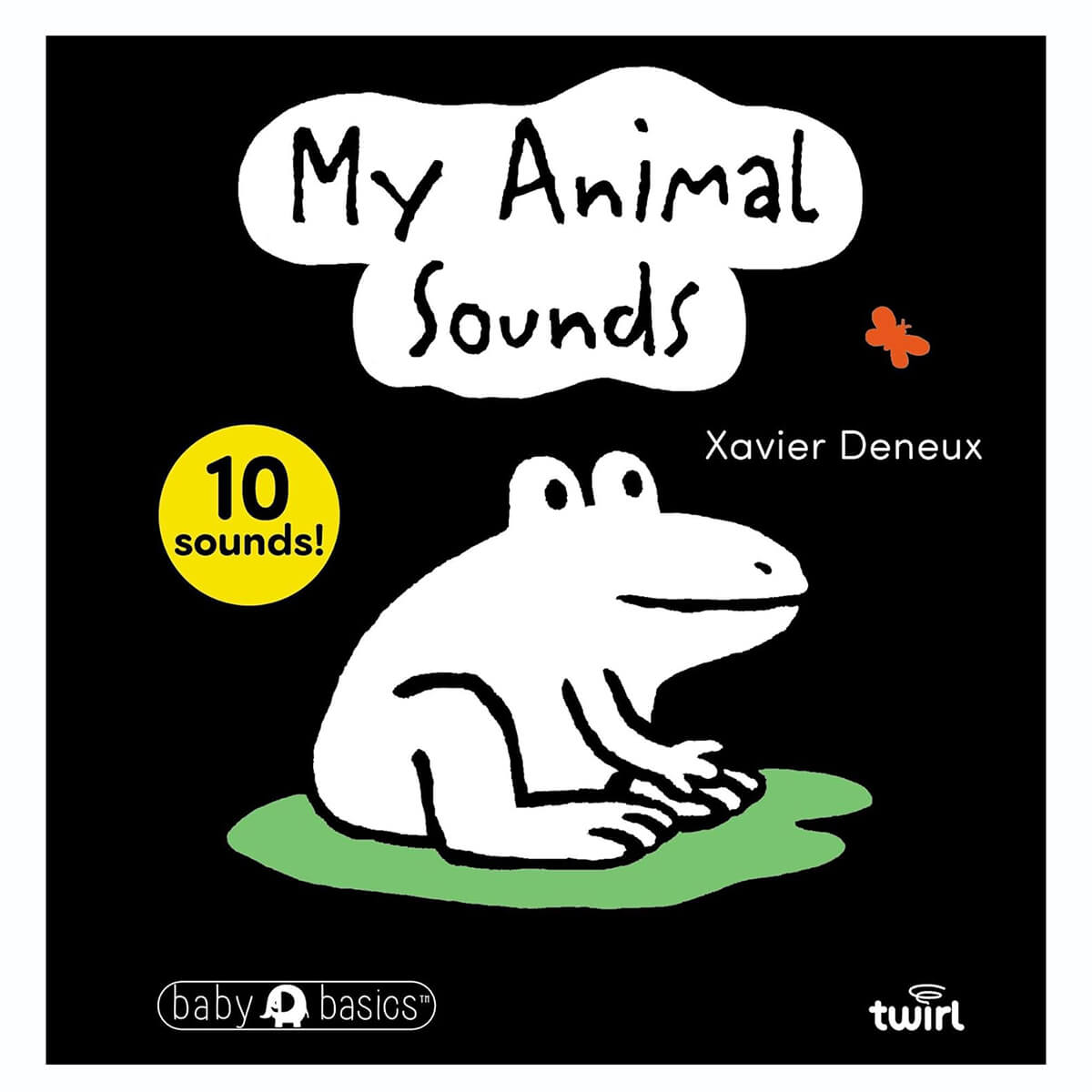 My Animal Sounds by Xavier Deneux. Moo! Baa! Oink! The animals are talking! Sound chips provide the interactive element to Xavier Deneux’s high-contrast illustrations of familiar animals. What does the dog say? How about the elephant? Young readers can find out by pressing the pages. What fun! Sturdy board book with sound chips embedded on each page.