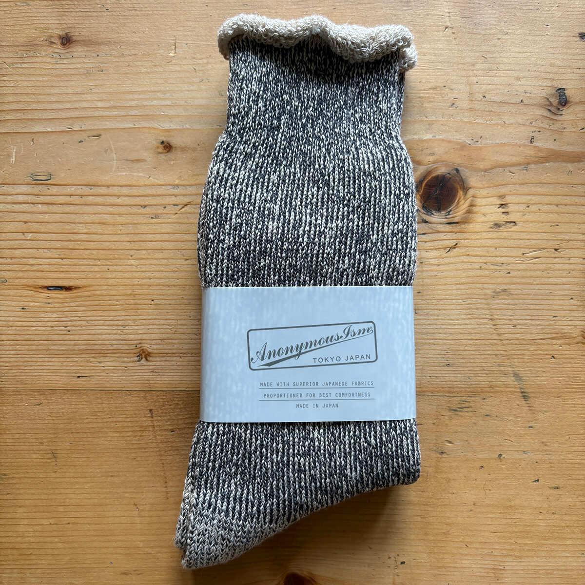 Anonymous Ism was founded in 2002 in Tokyo, Japan, making its first sock collections on 1970s traditional knitting machines which were slow and unreliable, but able to create intricate designs and textures of exceptional quality which was not possible in commercial manufacturing. The machines were rare, with spare parts very hard to find, so Anomymous Ism developed modern alternatives in sock production that could replicate the feel of the old looms and reproduce the traditional Japanese textile techniques without having to worry about machinery parts falling off. The brand continues to manufacture in Japan using sustainable techniques and thoughtful packaging. Its rider (the wrap around the socks) was developed with the Japanese government, it’s made from Limex (limestone) and will one day go back to being limestone. Anonymous Ism designs reference not only traditional sock-making but also diverse modern sources - marine, military and workwear, to name a few. Historical Japanese designs, incorporating art, traditional clothing and the ancient military disciplines also contribute to a huge variety of influences and inspirations. The brand has become synonymous with understated anonymous style and timeless design, and many of their designs have now become iconic, modern classics.