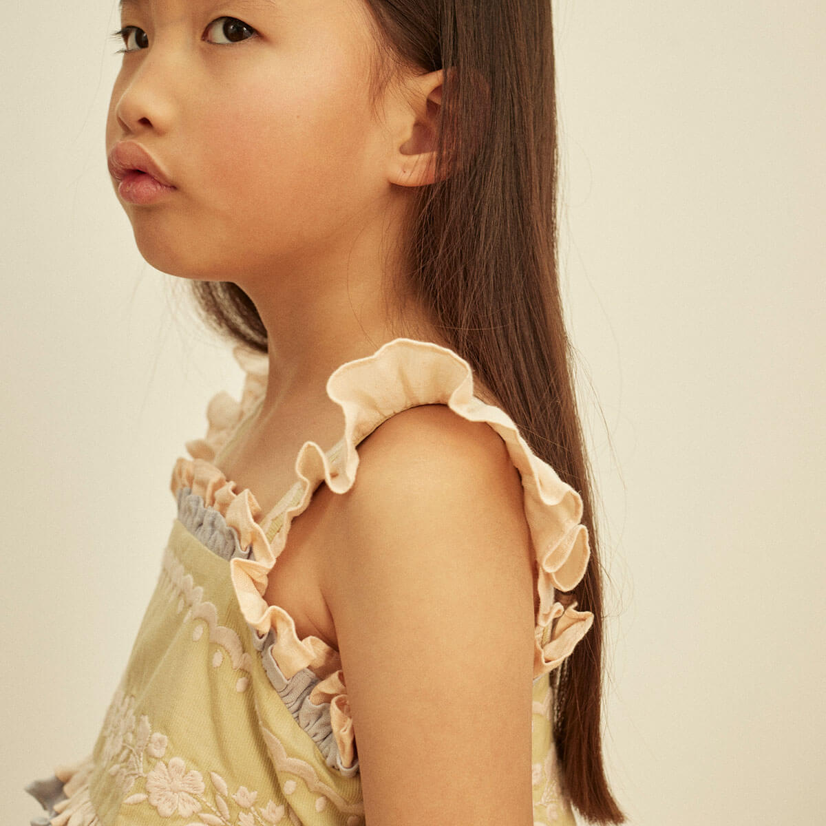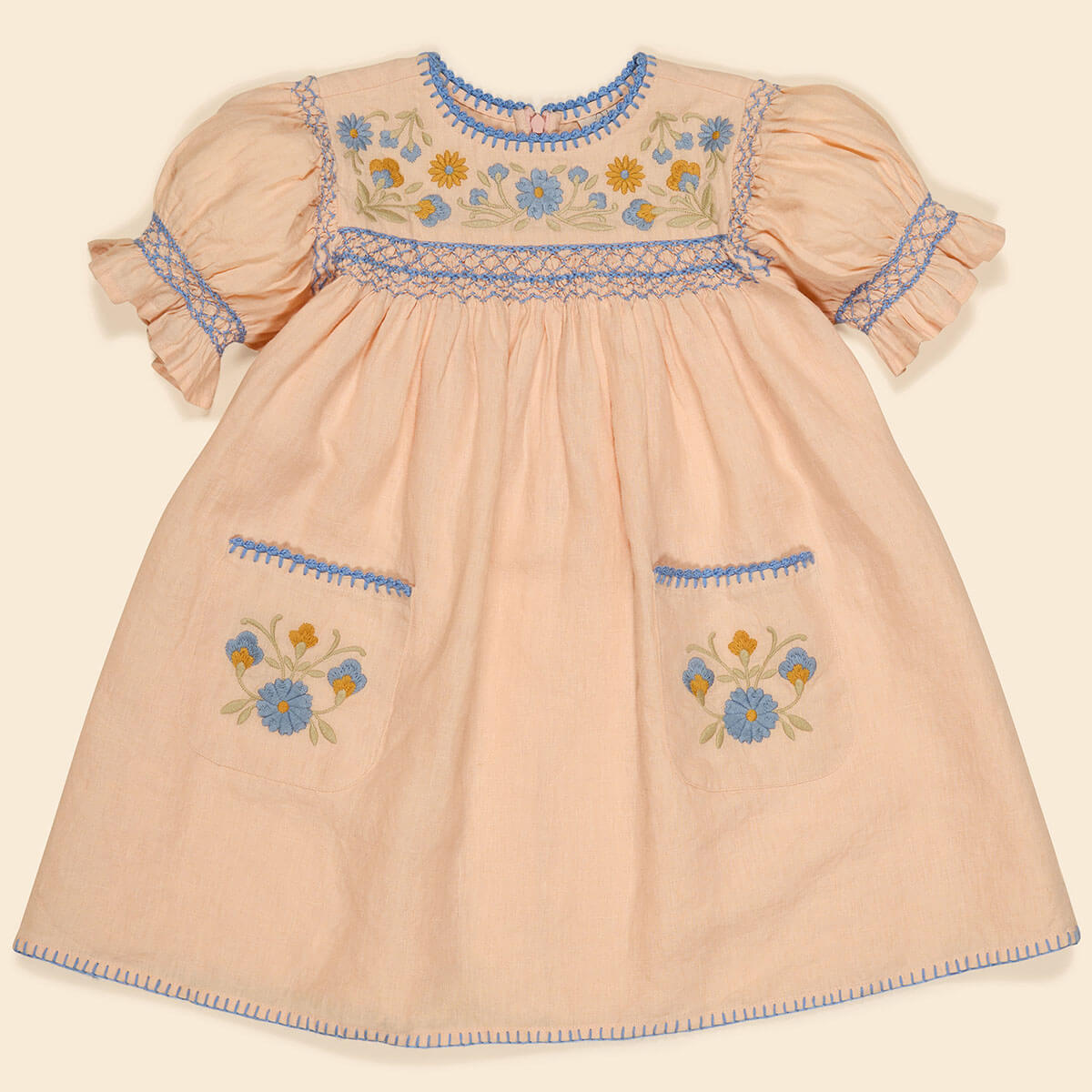 Each item is unique due to the hand finishing of the garment, and styles are produced in limited numbers through 'small batch' production. Each style is seasonless and has been designed to be layered up or dressed down depending on the weather, to encourage maximum wear / minimum waste and to help remove the idea of disposability in fashion. Each Apolina piece is designed to be cherished and passed down to younger siblings, and then kept by mothers as a reminder of precious childhood memories, with the hope to be given to grandchildren as a future heirloom.
