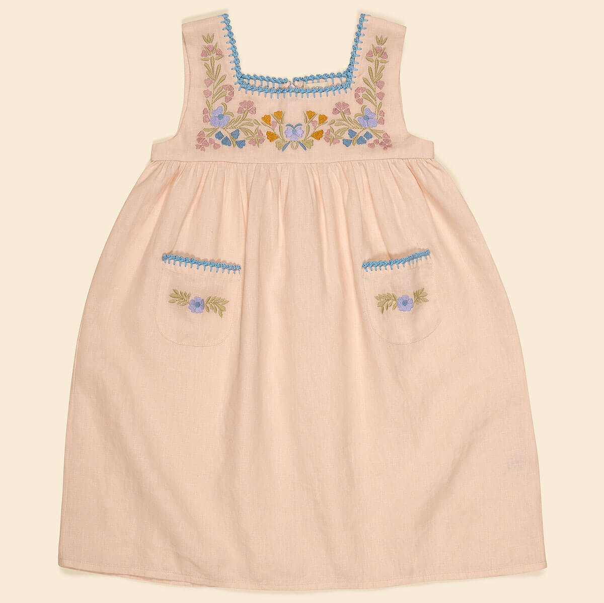 Inspired by memories of the cherished pieces from her childhood - dresses hand-embroidered by her grandmother and 1970s hand-me downs from older cousins - founder and designer Caroline Duckett created Apolina, with the aim of creating a line of inspiring childrenswear reflecting her own personal style, for like-minded mamas and their free-spirited babies. Apolina was born out of a desire to create a more authentic style, something exciting yet nostalgic; not a passing trend but a modern bohemian range with longevity and a sense of craft. Apolina is designed in England, but inspired by travel and the natural world. Traditional handicrafts from many different cultures serve as the starting point for all Apolina pieces, particularly folk art from Scandinavia, Mexico, America and Eastern Europe. The colour palette looks to unusual colour combinations found in nature, and the relaxed silhouettes are designed mindfully to ensure children are comfortable and able to play freely as well as allowing for growth thus ensuring an increased wear-time.