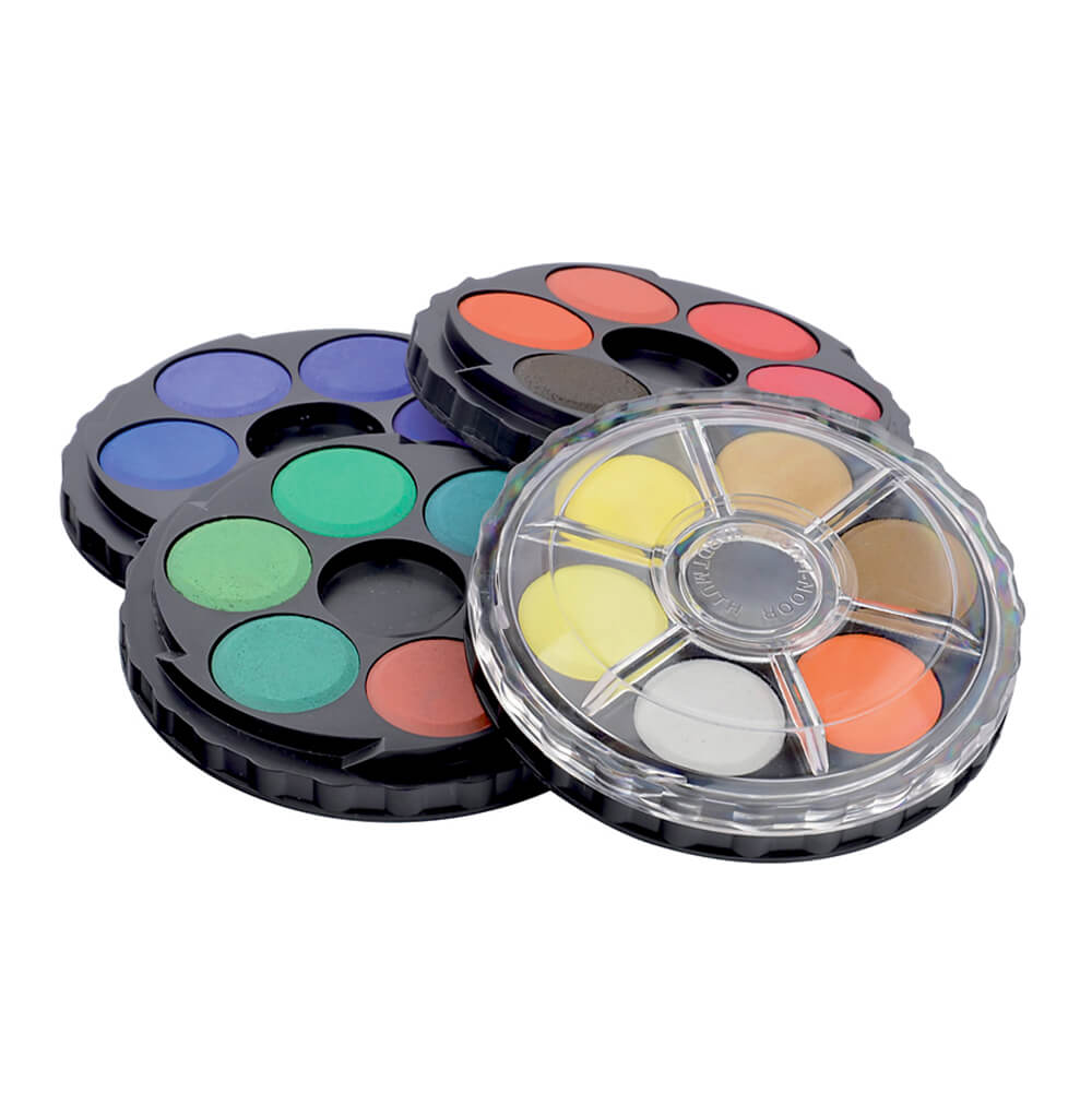 Set of 24 brilliant watercolours by Koh-I-Noor. Set of 24 high quality watercolours presented in round casings with a transparent lid.