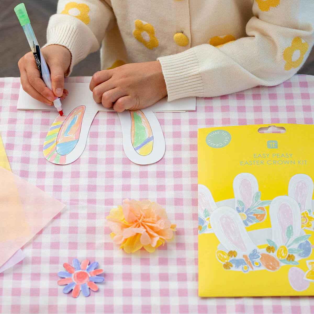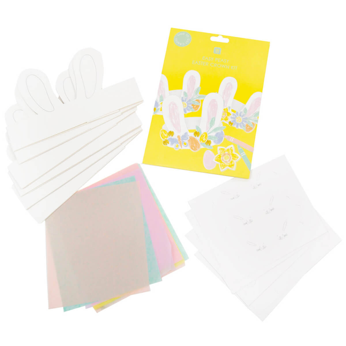 Easter Crown Decorating Kit by Talking Tables. Royally accessorise with our DIY Easter Crown Making Kit. This kit includes everything children need to customise their own crown, including thick craft card to colour in and tissue paper to cut out and stick on to. The result, regal headpieces your little princes and princesses will love wearing.
