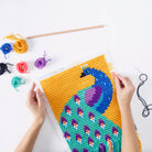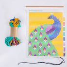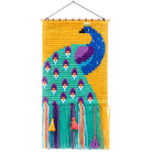 Peacock wall art needlepoint kit by Sozo. These Sozo kits are an easy and fun way to create a beautiful needlepoint tapestry wall hanging. The design is printed on heavy, short stitch fabric net, removing the need for an embroidery hoop and making the kit easier for younger children. The kit has everything you need to make a beautiful wall art embroidery, including tassels, pom pom, and a wooden dowel, so you can easily display your finished work, and is packaged in a cotton string bag so you can easily carry your needlepoint kit with you everywhere you go.