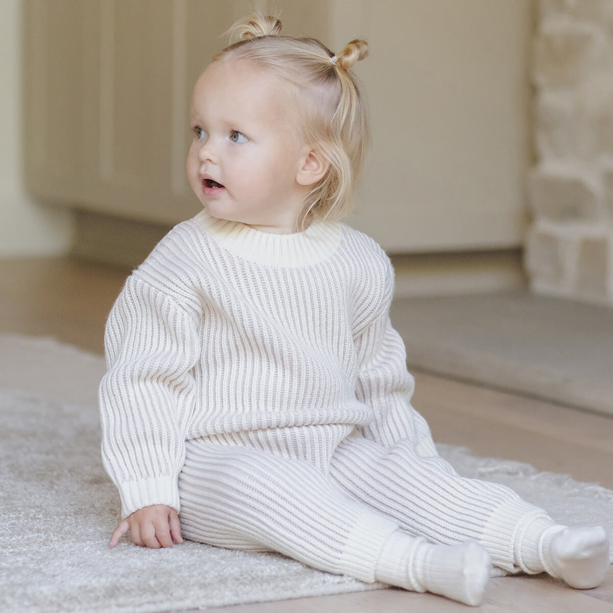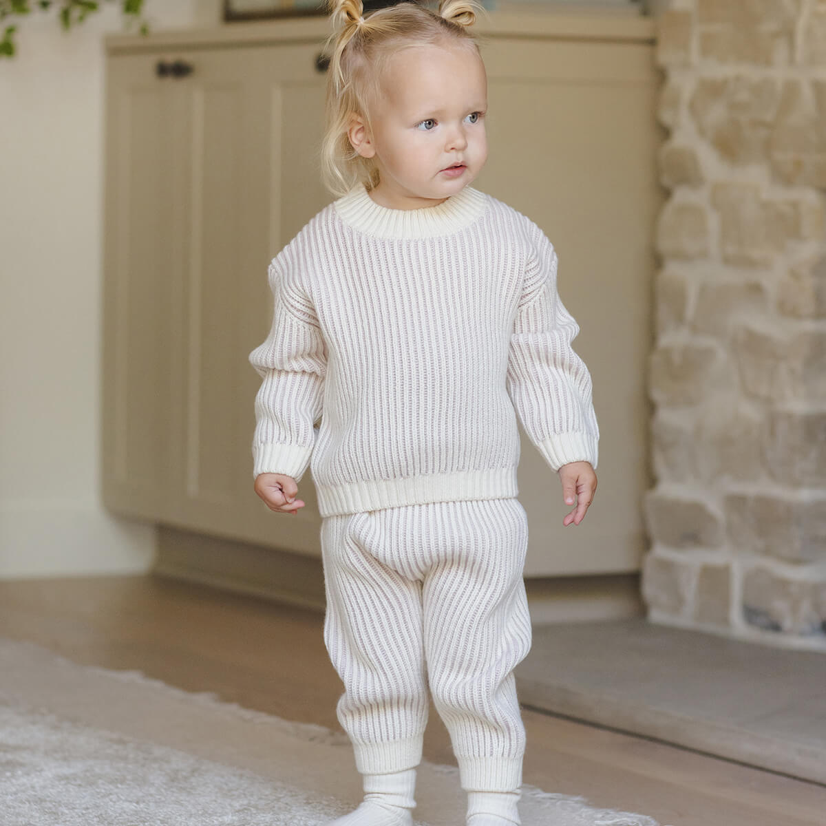 Chunky Knit Pants by Quincy Mae. Chunky knit trousers with contrast ribbing and fixed front tie detail, pairs perfectly with the relaxed knit sweater.