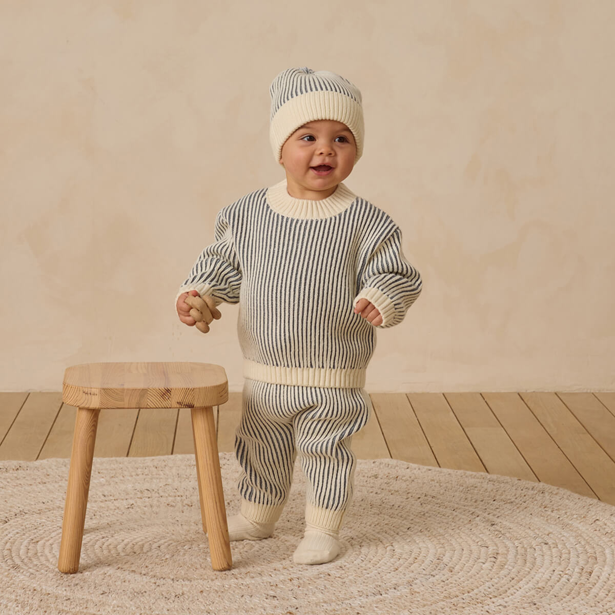 Chunky Knit Pants by Quincy Mae. Chunky knit trousers with contrast ribbing and fixed front tie detail, pairs perfectly with the relaxed knit sweater.
