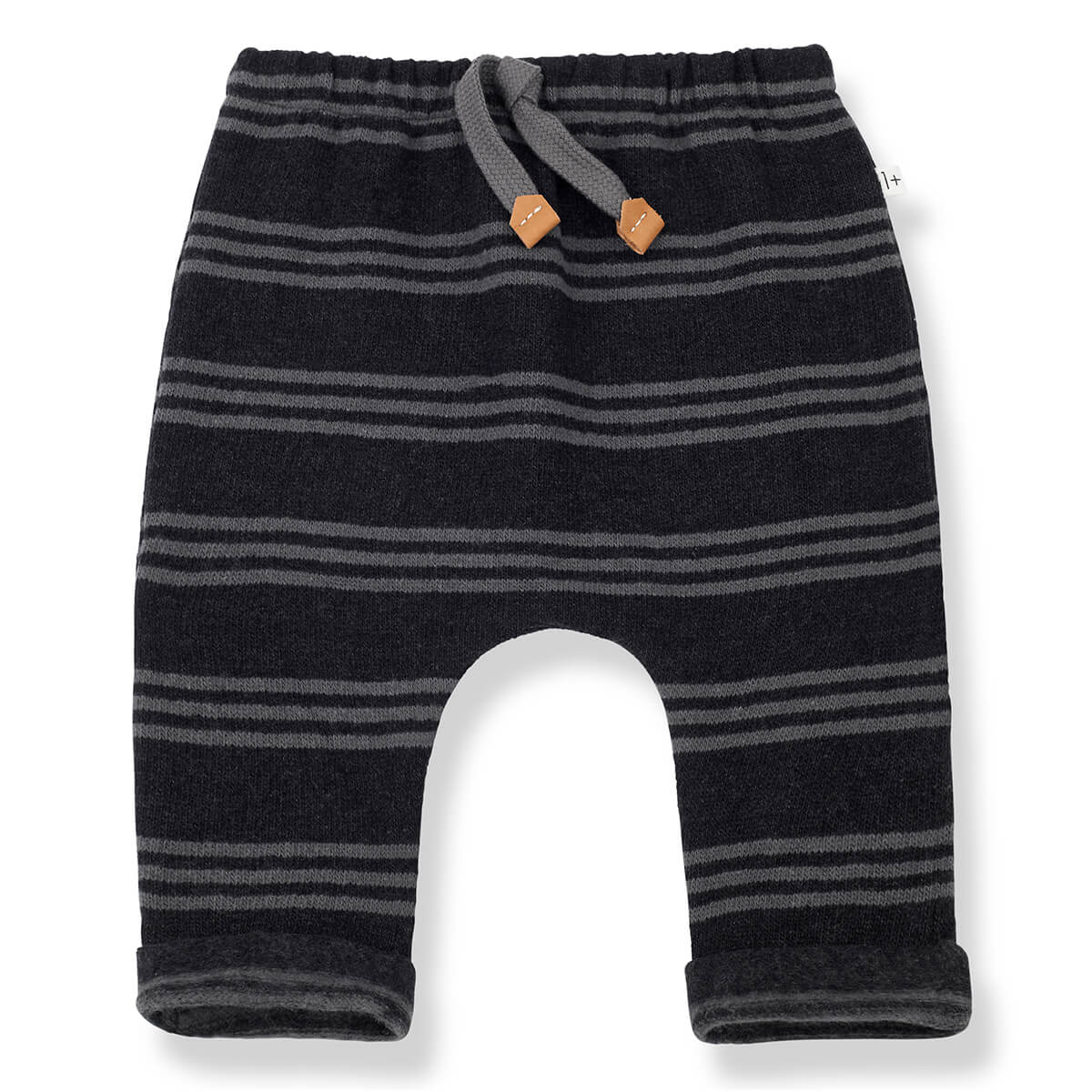 Uriel Pants by 1+ in the Family. Extra soft striped fleece baby trousers with a drawstring waist.